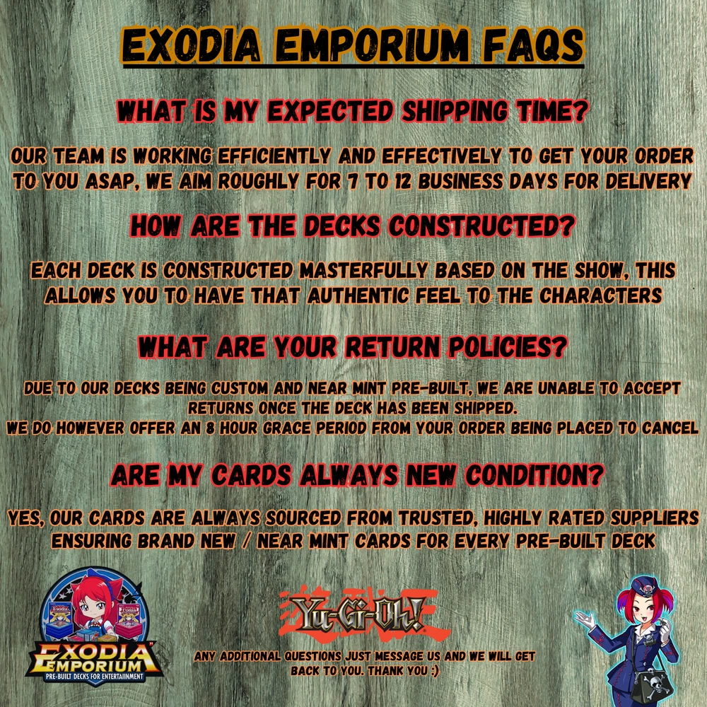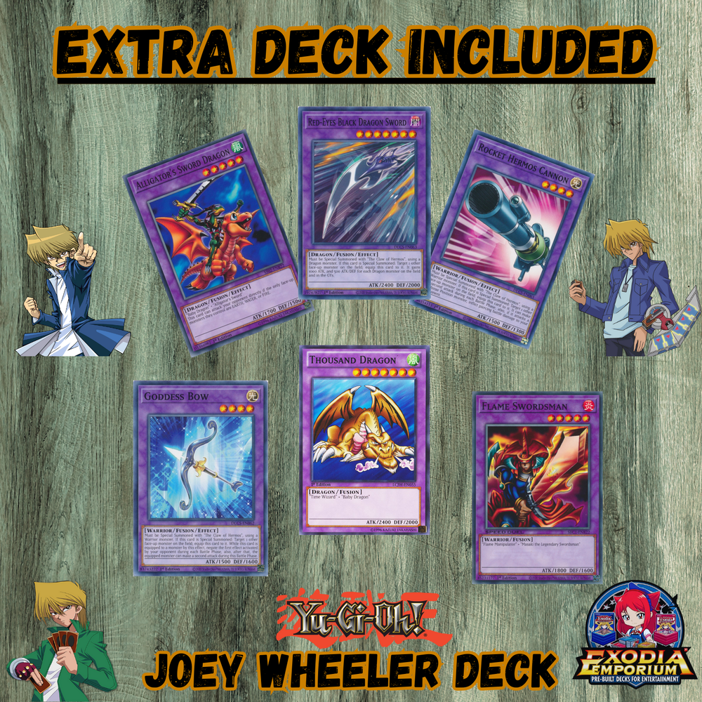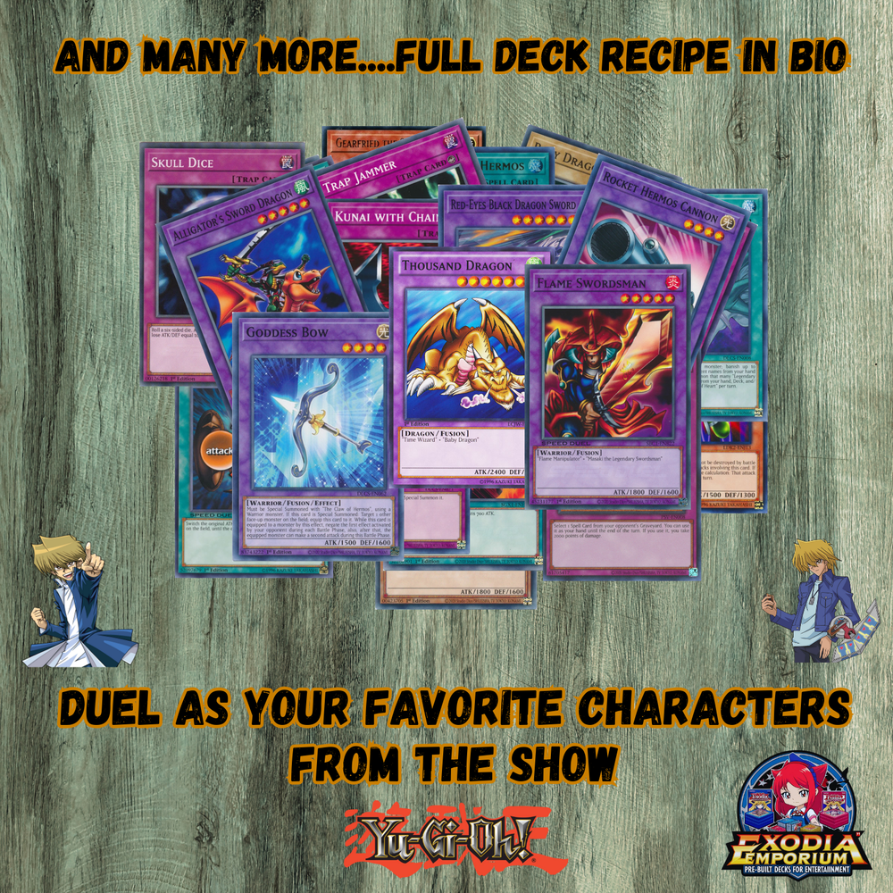 40 cards, featuring the most iconic cards used by Seto Kaiba in Yu-Gi-Oh Duel Monsters. Seto Kaiba Main Deck (40 Cards) Monsters (21) x2 Red-Eyes Black Dragon x1 Time Wizard x1 Baby Dragon x1 Gearfried the Iron Knight x1 Gearfried the Swordmaster x1 Rocket Warrior x1 Alligator’s Sword x1 Jinzo x1 Panther Warrior x1 Flame Swordsman x2 Goblin Attack Force x1 Little-Winguard x1 Marauding Captain x1 Axe Raider x1 Blue Flame Swordsman x1 Swordsman of Landstar x1 Gilford the lightning x1 Hyabusa knight Spells (12) x1 The Claw of Hermos x1 Polymerization x1 Monster Reborn x2 Mystical Space Typhoon x1 Scapegoat x1 Fusion Sword Murasame Blade x1 Roulette Spider x1 Salamandra x1 Legend of Heart x1 Shield & Sword Traps (7) x1 Kunai with Chain x1 Trap Jammer x1 Magic Arm Shield x1 Skull Dice x1 Graceful Dice x1 Red-Eyes Spirit x2 Call of the Haunted x1 Grave robber Extra Deck (7 Cards) x1 Red-Eyes Black Dragon Sword x1 Time Magic Hammer x1 Rocket Hermos Cannon x1 Goddess Bow x1 Alligator’s Sword Dragon x1 Flame Swordsman x1 Thousand Dragon All cards in near-mint condition. Speed Duel edition cards can be used in all competitive Yu-Gi-Oh formats.