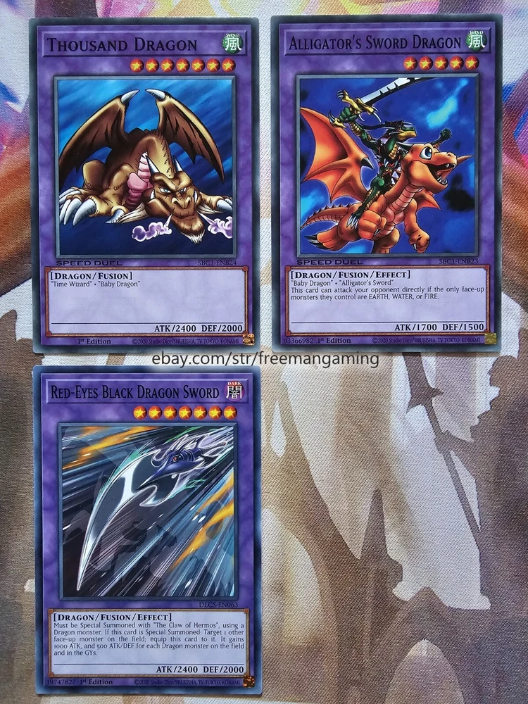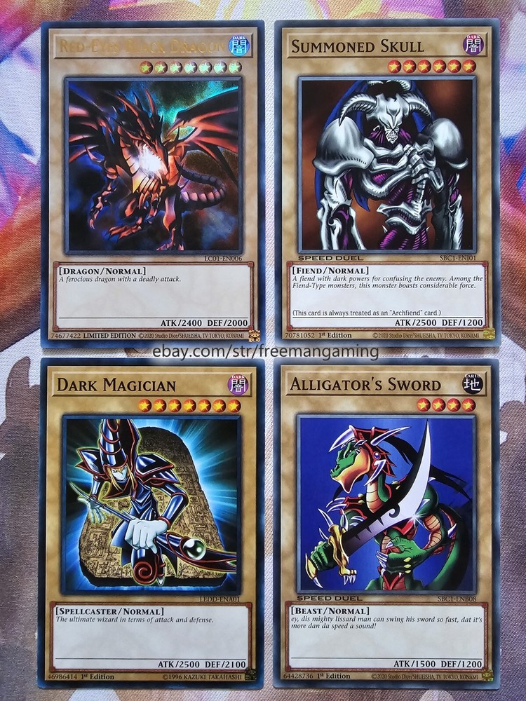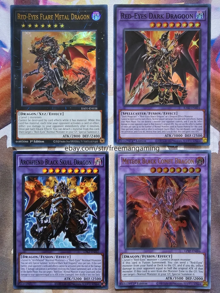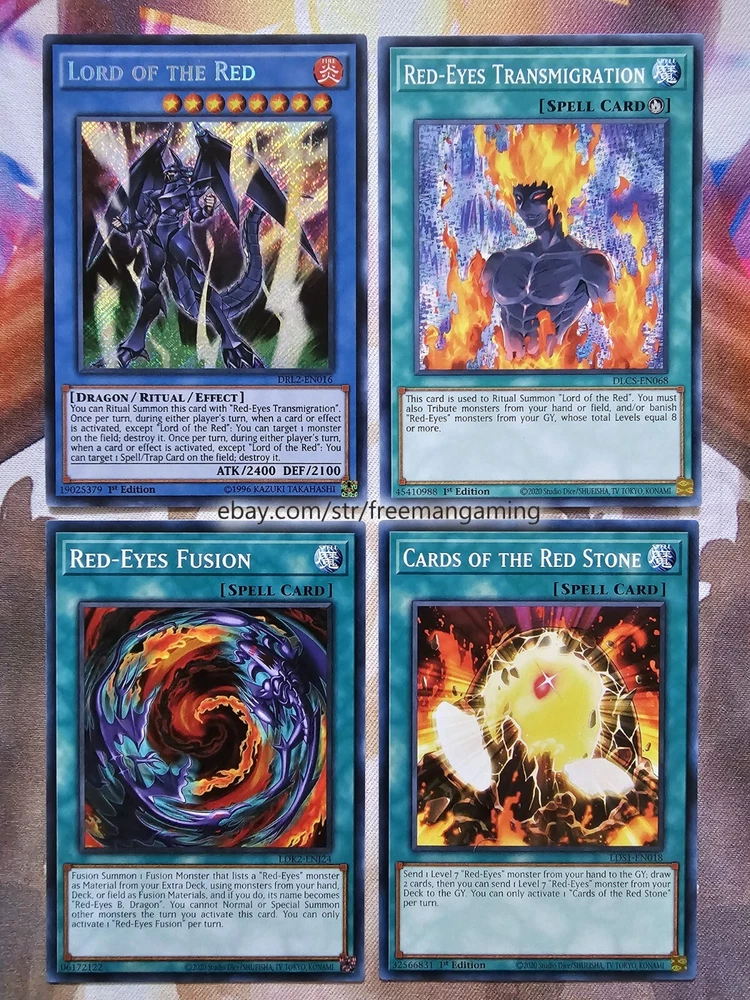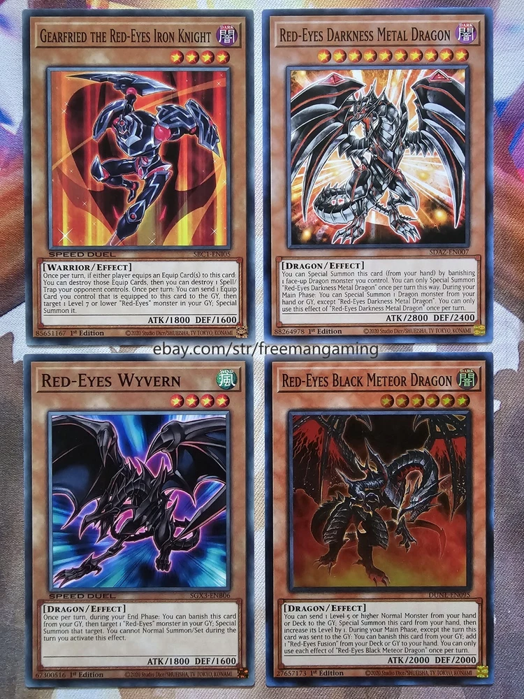 Item Description All cards are in NM Near Mint Condition. All cards included have been used by Joey Wheeler in the TV Show and official Konami Yugioh Video Games. Monsters x25 - 1x Red-Eyes Black Dragon (ultra rare) 1x Summoned Skull 1x Dark Magician 1x Alligator's Sword 1x Baby Dragon 1x Time Wizard 1x Jinzo 1x Gilford the Lightning 1x Little-Winguard 1x Rocket Warrior 1x Giltia the D. Knight Soul Spear (secret rare) 1x Gearfried the Iron Knight 1x Gearfried the Red-Eyes Iron Knight 1x Red-eyes Darkness Metal Dragon 1x Red-Eyes Wyvern 1x Red-Eyes Black Meteor Dragon (super rare) 1x Red-Eyes Black Flare Dragon 1x Red-Eyes Archfiend of Lightning 1x Red-Eyes Soul 1x Red-Eyes Retro Dragon 1x Black Metal Dragon 1x Red-Eyes Baby Dragon 1x The Black Stone of Legend 1x Black Dragon's Chick 1x Lord of Red (secret rare) Spells x9 - 1x Red-Eyes Transmigration 1x Red-Eyes Fusion 1x Cards of the Red Stone 1x Inferno Fire Blast 1x Scapegoat 1x Lightning Blade 1x Dragon Nails (ultra rare) 1x The Claw of Hermos (ultra rare green, purple, or blue) 1x Polymerization (super rare) Traps x6 - 1x Red-Eyes Spirit 1x Red-Eyes Burn 1x Return of the Red-Eyes 1x Kunai with Chain 1x Magical Arm Shield 1x Trap Hole with Spikes Extra Deck x10 - 1x Red-Eyes Flare Metal Dragon (ultra rare) 1x Meteor Black Comet Dragon (ultra rare) 1x Archfiend Black Skull Dragon 1x Red-Eyes Dark Dragoon (super rare) 1x Thousand Dragon 1x Alligator's Sword Dragon 1x Red-Eyes Black Dragon Sword 1x Rocket Hermos Cannon 1x Goddess Bow 1x Time Magic Hammer All items are in mint/near mint condition unless otherwise specified in the title or description. This listing is for the items named in the title and pictured here. What you see in the picture is what you will receive.
