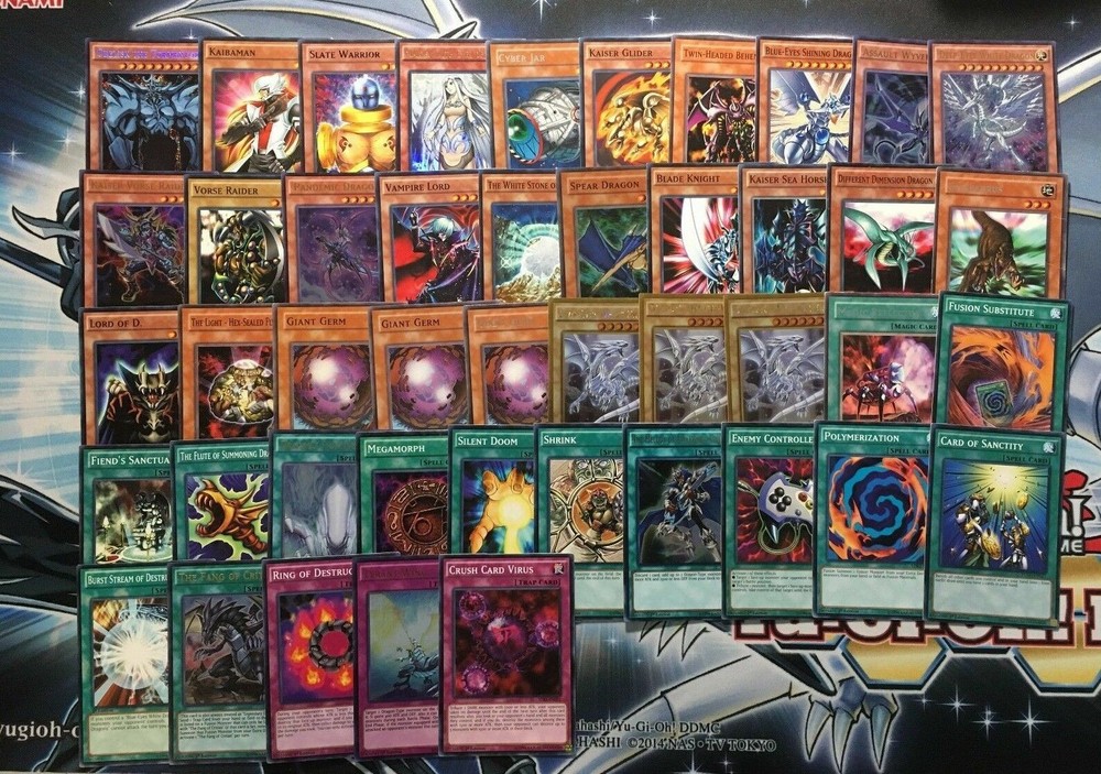 Hello all I am a New Ebay Seller!!! I am a Male Yugioh & Magic Collector!!! I aim to please so Please Please Please MSG me about an item if you are not completely Satisfied with it. Picture may have been edited due to Inventory Changes Please read description Below Below is the featured item if you have any questions please MSG me!!! Happy Bidding!!! A bonus for ordering you will also Get a Free Holo Card from my collection. It maybe Super Rare, Ultra Rare, or SECRET Rare!!! You are bidding on: Monsters: 1| Obelisk The Tormentor 1| Kaibaman 1| Slate Warrior 1| Maiden With Eyes of Blue 1| Cyber Jar 1| Kaiser Glider 1| Twin-Headed Behemoth 1| Blue-Eyes Shining Dragon 1| Assault Wyvern 1| Deep-Eyes White Dragon 1| Kaiser Vorse Raider 1| Vorse Raider 1| Pandemic Dragon 1| Vampire Lord 1| The White Stone of Legend 1| Spear Dragon 1| Blade Knight 1| Kaiser Seahorse 1| Different Dimension Dragon 1| Gilasaurus (Played) 1| Lord of D. 1| The Light - Hex-Sealed Fusion 3| Giant Germ 3| Blue-Eyes White Dragon Spells: 1| Magic Reflector 1| Fusion Substitute 1| Fiend's Sanctuary 1| The Flute of Summoning Dragon 1| Dragon's Fighting Spirit 1| Megamorph 1| Silent Doom 1| Shrink 1| The Melody of Awakening Dragon 1| Enemy Controller 1| Polymerization 1| Card of Sanctity 1| Burst Stream of Destruction 1| The Fang of Critias Traps: 1| Ring of Destruction 1| Crush Card Virus 1| Tyrant Wing Extra Deck: 1| Blue-Eyes Spirit Dragon 1| Blue-Eyes Ultimate Dragon 1| Mirror Force Dragon 1| Doom Virus Dragon 1| Tyrant Burst Dragon
