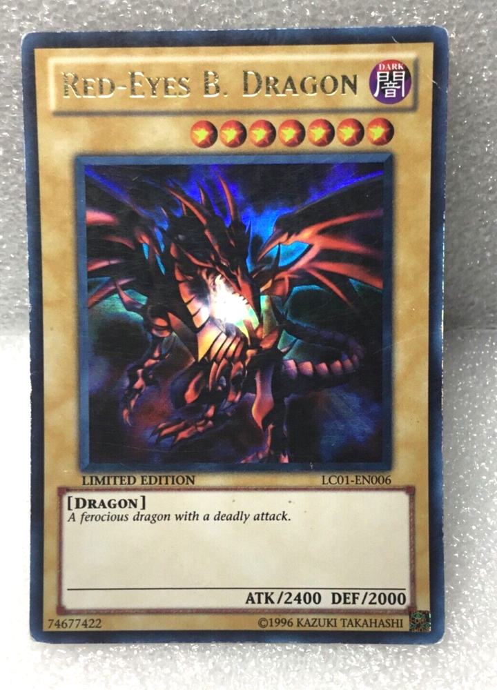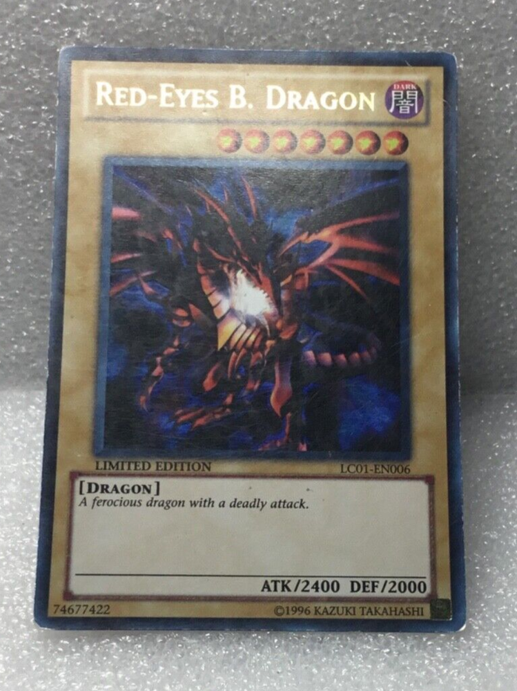 WELCOME TO OUR AUCTION! Yugioh LC01-EN006 Red Eyes Black Dragon Limited Edition Card Displays incredibly well Great shape,Played with condition not mint or perfect, has very light rubs, light scratches, light tiny bends as pictured...please see pics!! We just picked up a large collection of Vintage Yugioh cards… Make sure you check out our other Auctions WE COMBINE SHIPPING ALL ADDITIONAL CARDS SHIP FREE!