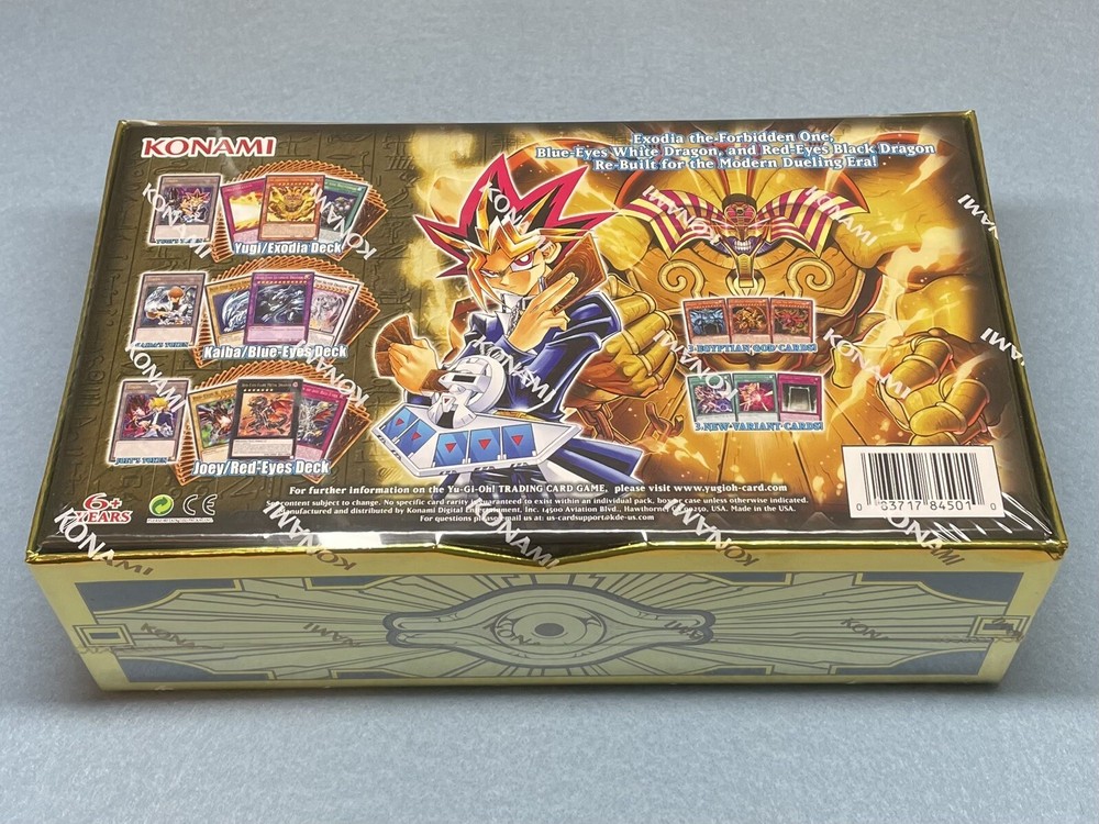 You will receive the following items in the sealed Legendary Decks II box set: Yami Yugi's Egyptian God Card + Exodia Deck Seto Kaiba's Ultimate Blue Eyes White Dragon Deck Joey Wheeler's Red Eyes Black Dragon Deck Promo Pack (includes Secret Rare versions of the cards Dark Burning Magic, Dark Burning Attack, and Eternal Soul) All decks are brand new and sealed.