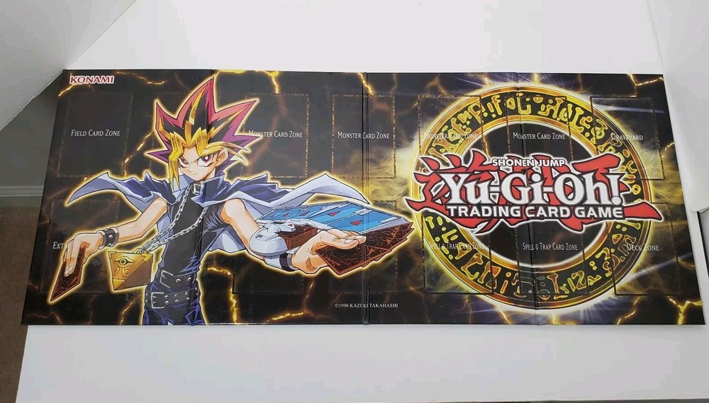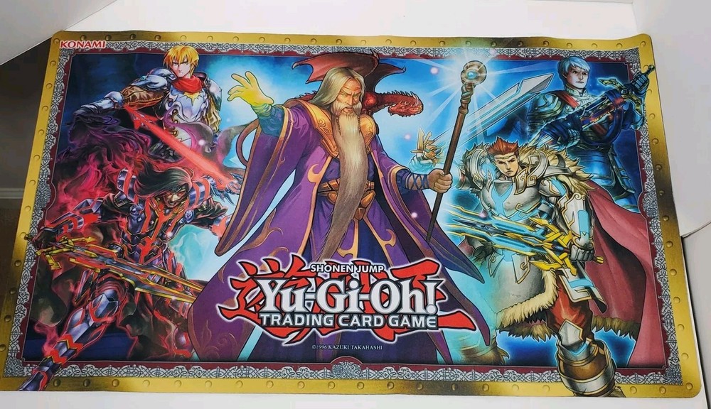 Lot includes Three oversized promo cards. Merlin and the noble knights playmat. Three gameboards. Empty Duel Power box. This Yugioh lot includes three oversized cards.TCG game and are in English language. Comes with three game boards, playmat, and D-P box, making it a perfect addition to any collector's set. The accessories are manufactured by Konami and are suitable for ages 100+. Whether you're a fan of the game or a collector, this lot is a must-have.
