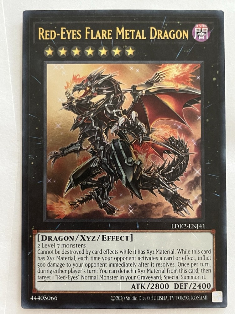 You are bidding on: Yugioh! Red-Eyes Flare Metal Dragon - LDK2-ENJ41 - Ultra Rare - Unlimited Edition Condition: Condition: Moderately Played | Language: English All photos are stock, unless mentioned otherwise. Card edition, rarity, etc. are listed in the title and description. Cards are in English unless otherwise stated in title or description. Items will be shipped within 1 business day upon receiving cleared payment. We ship Monday through Saturday in order to get the item(s) to you as quickly as possible Before leaving neutral or negative feedback, please contact us beforehand so we can discuss the issue. Feel free to message me with any questions you have regarding this auction or my policies. Shipping Options: USPS Mail - $0.99 Orders $29.99 (exc. sales tax) and under will be sent in a white envelope in a card saver + soft sleeve using eBay's Standard Envelope tracking service. Orders $30.00 (exc. sales tax) and over will be sent with free USPS tracking information w/ toploader + soft sleeve. Priority Mail - $9.99 2-3 Day shipping Orders will be shipped in a flat rate envelope in a toploader + soft sleeve. Priority Express Mail - $29.99 1-2 Day shipping Orders will be shipped in a flate rate envelope in a toploader + soft sleeve. *All orders over $100 will be sent with free insurance. All orders over $250 will be sent with free insurance and signature confirmation.* Card Grading: Near Mint (NM) - Cards with this grade will show minimal to no wear from shuffling, play or handling and can have a nearly unmarked surface, crisp corners and unblemished edges outside of a few minimal flaws. Holographic cards are more scrutinized than non-holo cards. Lightly Played (LP) - Cards with this grade may have a few dings, light playwear and/or edgewear. A crease or bend is acceptable if it is less than approximately 1/2 inch in size and is only visible on one side. Moderately Played (MP) - Cards with this grade may have dings, playwear and/or edgwear, 1 or 2 creases or bends that do not go through the length of the card. Heavily Played (HP) - Cards with this grade may have dings, playwear and/or edgwear, creases or bends that may go the length of the card, markings and/or coloring, tears on the edges. Despite being the lowest of grading, these cards are still tournament legal. If you receive a card not in the stated condition, please contact us to return the item for a full refund. Thank you for buying.