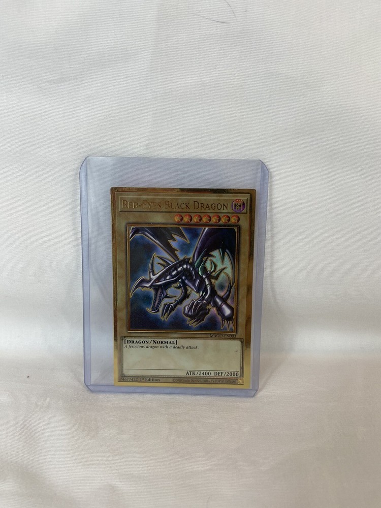 This listing offers a rare opportunity to acquire the highly sought-after Red-Eyes Black Dragon card from the Yugi set. This Yu-Gi-Oh! TCG card is an Unlimited Edition Holo Rare, making it a valuable addition to any collection. The card is in near mint or better condition, ensuring its authenticity and quality. The card features stunning artwork and is perfect for fans of the series or collectors of CCG individual cards. The aspect of rarity is highlighted by the card's holo rare status, making it a must-have for avid collectors. Don't miss out on the chance to own this iconic card.