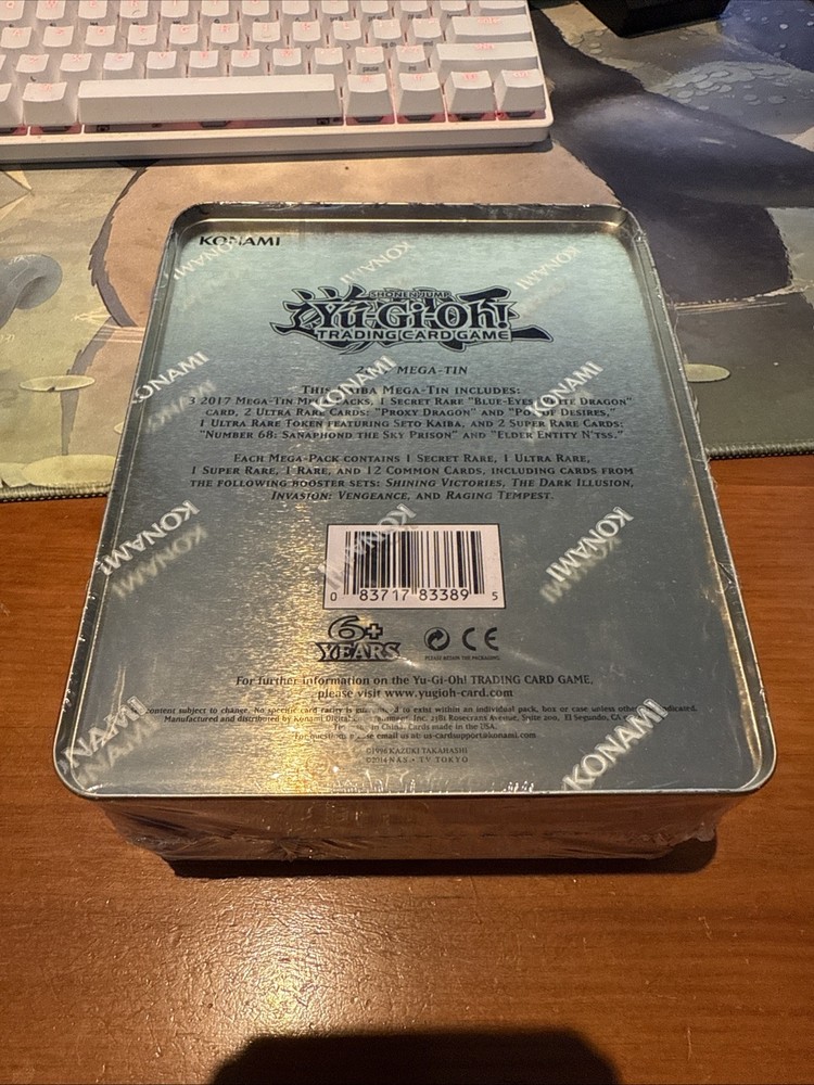 Dive into the world of high-stakes duels with the 2017 Yu-Gi-Oh! Mega Tin, featuring the legendary Seto Kaiba and the iconic Blue-Eyes White Dragon. This factory-sealed pack is a must-have for collectors and players alike, offering a first edition card that's a staple for any serious enthusiast's deck. With cards in English and adhering to the standard card size, this pack is perfect for both casual players and competitive strategists. Crafted by Konami and originating from the United States, this Mega Tin set is a part of a beloved character family that has captivated fans for years. Whether you're looking to enhance your gameplay or treasure a piece of Yu-Gi-Oh! history, the 2017 edition offers a nostalgic and exciting chance to uncover valuable cards.