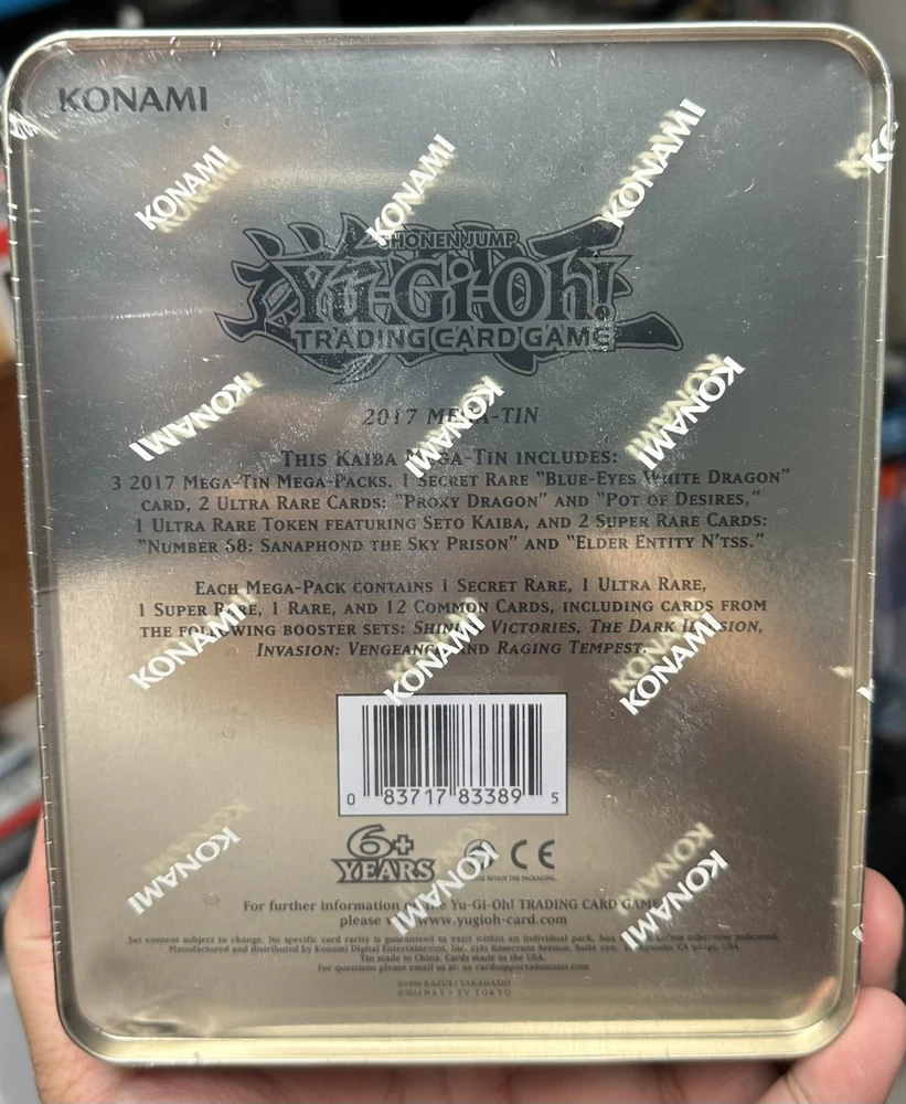 The product is a Yu-Gi-Oh! TCG 2017 Mega Tin featuring Seto Kaiba and his iconic Blue-Eyes White Dragon. This factory sealed pack contains 1st Edition cards in English language from the United States. Manufactured by Konami in 2017, this pack is part of the Yu-Gi-Oh! card game series and is a sought-after collectible for fans of the franchise. It offers a chance to obtain exclusive cards related to Seto Kaiba and the powerful Blue-Eyes White Dragon.