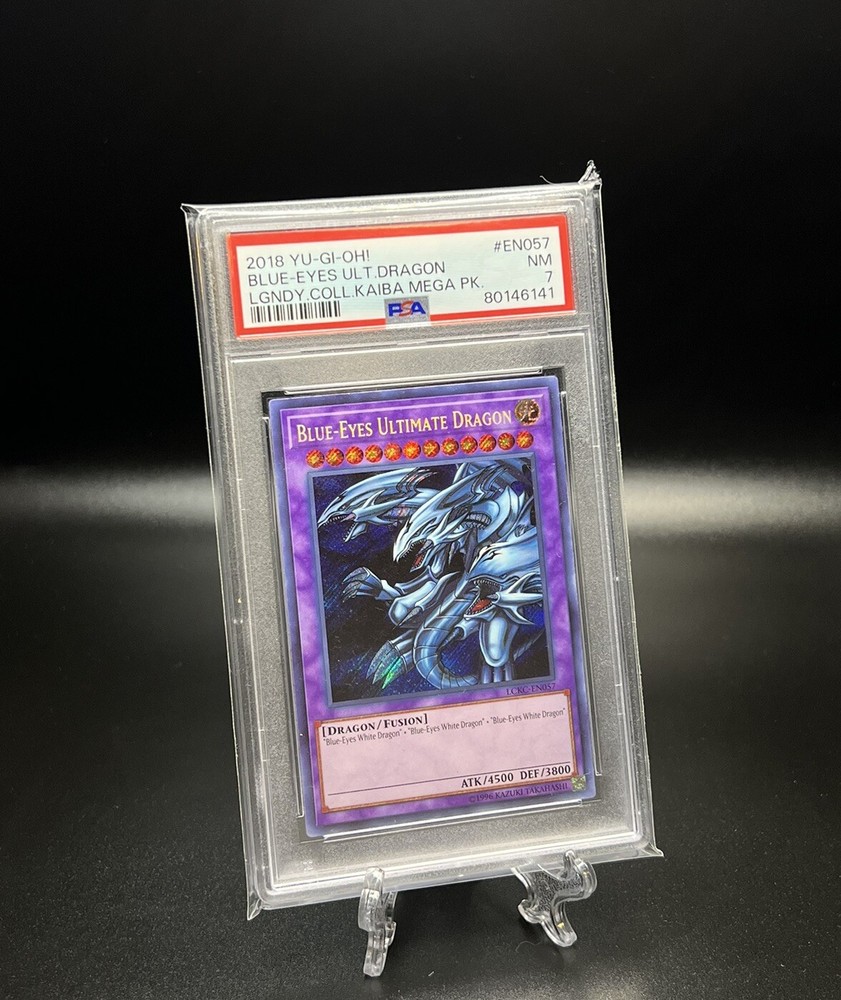 Yugioh PSA 7 NM-MT Blue-Eyes Ultimate Dragon LCKC-EN057 Secret Rare 1st Edition. Condition is Graded. Shipped with USPS Ground Advantage.