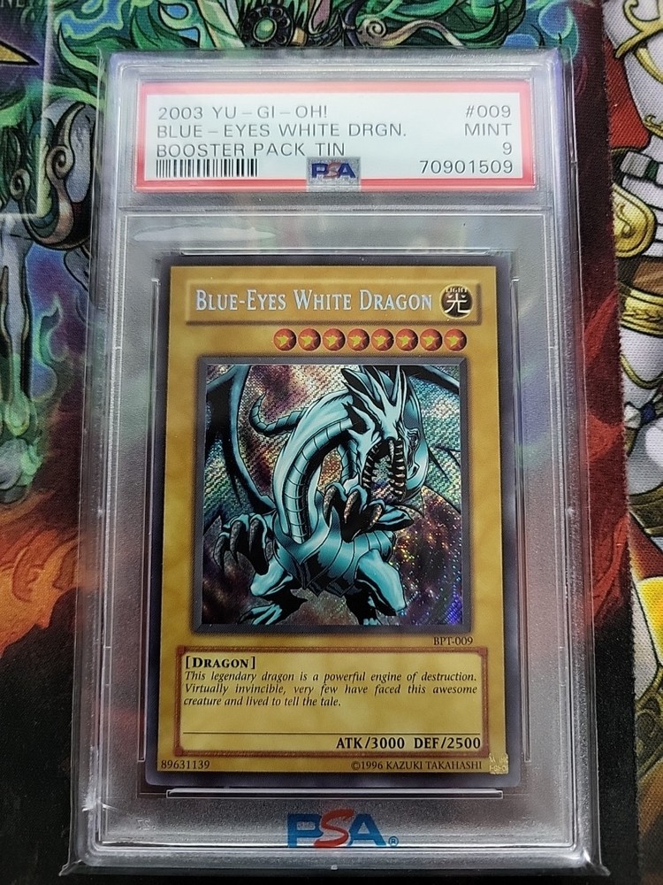 This rare and valuable Yugioh card features the iconic Blue-Eyes White Dragon and is a must-have for any serious collector. The card is a 1st Edition Secret Rare, with a foil finish, and has been professionally graded by PSA to receive a MINT 9 rating. The card also comes with an autograph from 5ban Graphics, signed on the front of the card, adding an extra level of uniqueness and value. The card is made of high-quality aluminum and features the character Aayla Secura, a Basic Stage Angel creature/monster type, and was manufactured in 1990. The card size is Japanese and the language is English. The card also comes with an autograph authentication from Beckett Authentication Services (BAS). This card is a true gem for any Yugioh TCG collector.