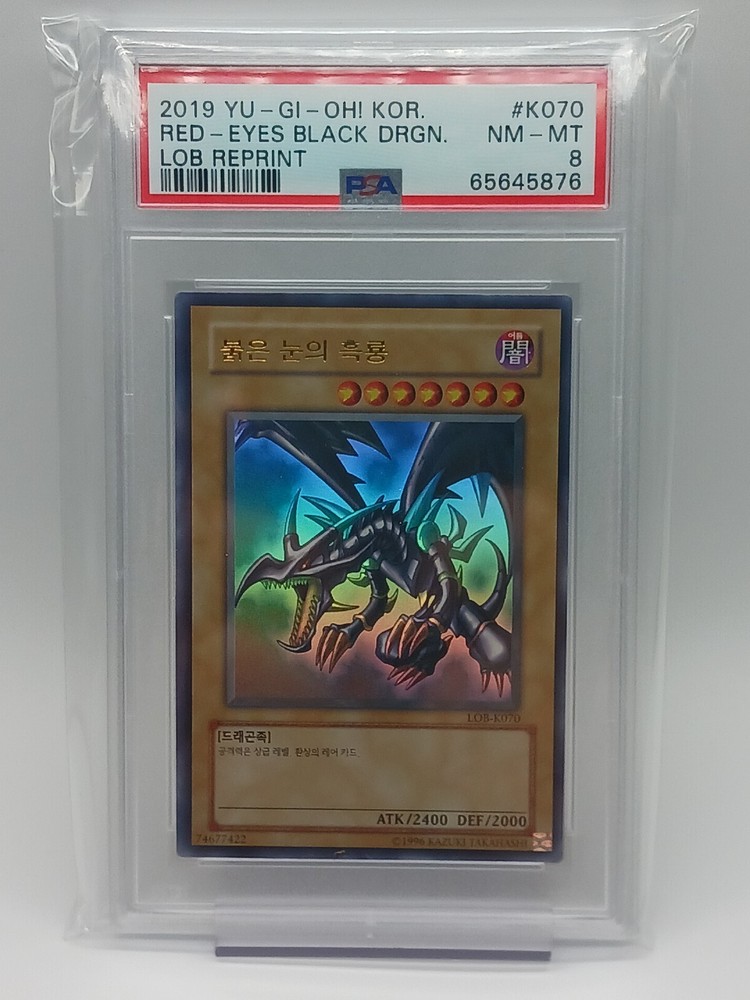 Yugioh - RED-EYES BLACK DRAGON LOB-K070 Reprint Korean PSA 8 Graded Mint....