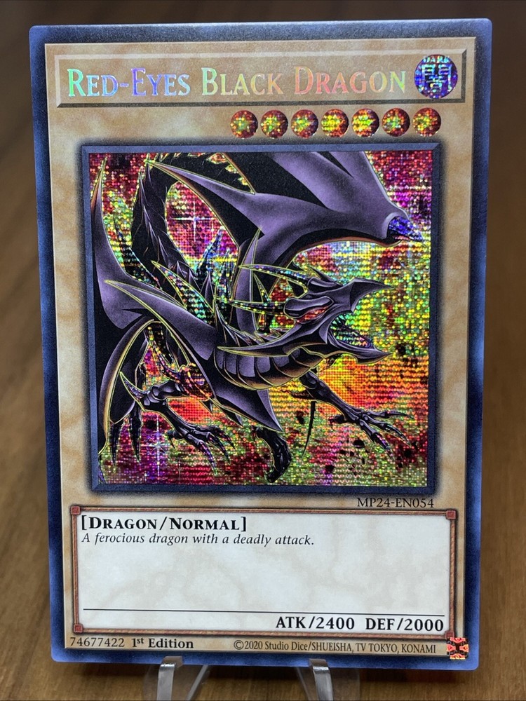 Yugioh - Dueling Mirrors #MP24-EN054 - Red-Eyes Black Dragon - Prismatic Secret Rare This card will be loaded into a sleeve and a Top Loader. I will send this piece wrapped in tissue paper in a box for protection during shipping. Please review photos and let me know if you have any questions. I will combine shipping if you purchase multiple items. I would add $1.00 for each additional item. Please allow me to send you an invoice with adjusted shipping costs. Thank you for taking a look at this Listing. I will be listing several more Sports Cards in the coming days. Please follow me to check out any new listings. Good luck finding your wants. :)