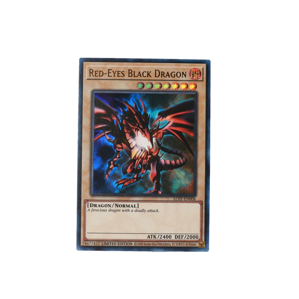 Dive into the world of high-stakes duels with the iconic Red Eyes Black Dragon card from the Yu-Gi-Oh! TCG Legendary Collection: 25th Anniversary Edition. As an Ultra Rare card numbered LC01-EN006, this piece is a must-have for collectors and competitive players alike, offering both limited edition appeal and the prestige of Konami's craftsmanship.The Red Eyes Black Dragon is not just a card but a symbol of power and rarity within the Yu-Gi-Oh! trading card game. Its English language version is ideal for players and collectors in the United States, ensuring ease of use and comprehension of its abilities. Add this legendary creature to your deck or display it with pride; it's a standout piece in any collection.