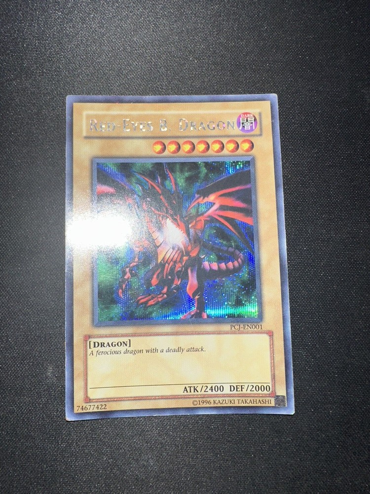 Yu-gi-oh! Red Eyes Black Dragon Secret Rare PCJ-EN001. Comes in a safe package! Sleeve DMG