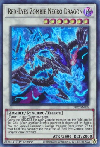 Red-Eyes Zombie Necro Dragon 1st Edition - Ultra Rare The card is in NM condition. Card will be placed in a top sleeve and loader for security. Also will include a free Holographic card which can be Super, Ultra, Secret, etc! Card Information GFP2-EN133 - 1st Edition - Ultra Rare Ghosts From the Past: The 2nd Haunting