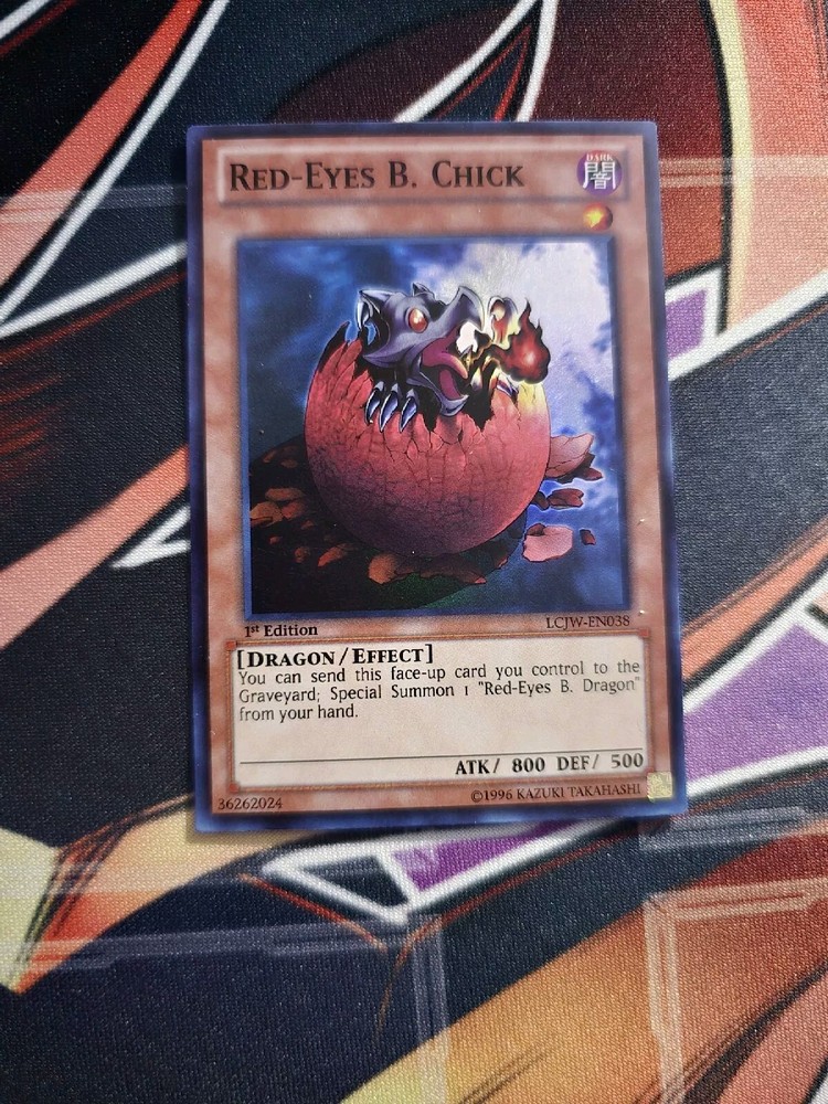 This Red-Eyes B. Chick is a fantastic addition to any Yu-Gi-Oh! collection! The card is in great LP condition with clean edges and minimal wear. Super Rare 1st Edition from LCJW makes it a must-have for Black Dragon fans. Seller ships fast and communicates well—highly recommended for serious collectors!
