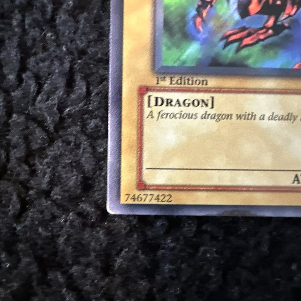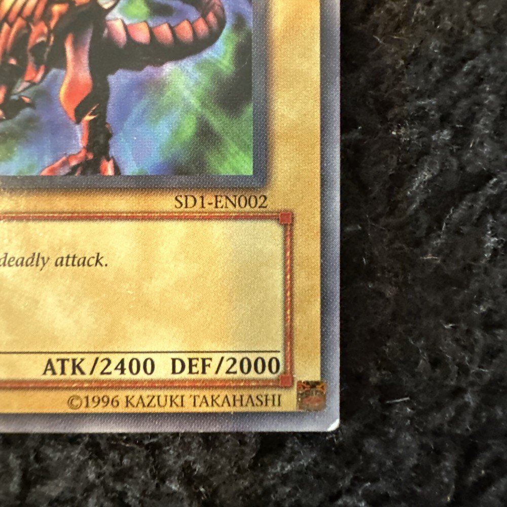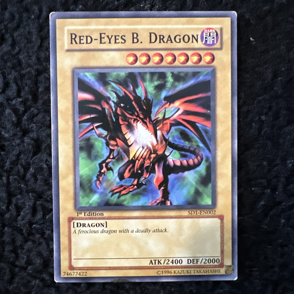 The product is a Yu-Gi-Oh! TCG card of Red Eyes Black Dragon, with the card number SD1-EN002. It is a Monster card manufactured by Konami, in moderately played (Very good) condition. This specific card is an Unlimited edition with 1st Edition features.