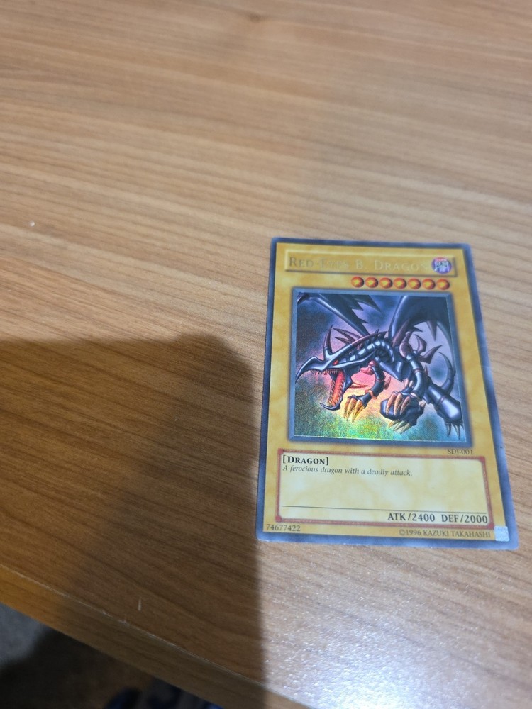 The Yugioh Red-Eyes B. Dragon SDJ-001 Ultra Rare card is a highly sought-after collectible in the world of Yu-Gi-Oh! TCG. This vintage card from 2006, signed by 5ban Graphics and authenticated by Beckett Authentication Services, features a unique design of a Black Angel creature type monster. The card is a Japanese size with a foil finish, making it a special 1st Edition BREAK card. With a rarity of 10000 Secret Rare, this card is a valuable addition to any collector's deck. Cards are shipped in penny sleeve plus top loaders, paper protection with painters tape, and standard white envelope.