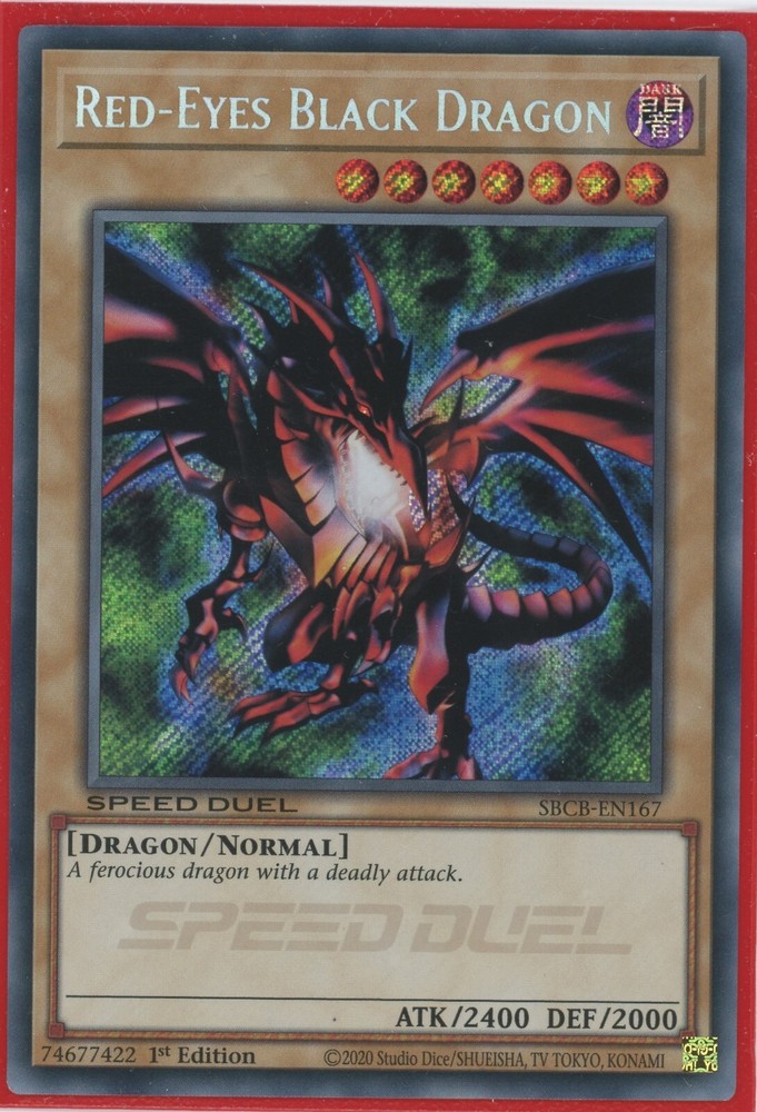Yugioh Red-Eyes Black Dragon SBCB-EN167 Secret Rare 1st Edition NM/LP You can find more Yu-Gi-Oh cards of all value and rarity in our other listings All cards are in excellent condition unless stated otherwise and the photos are of cards we own but may not be the exact card you receive due to the quantities listed.