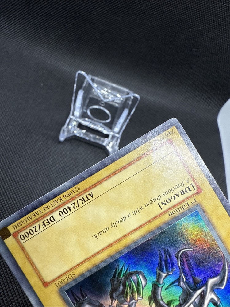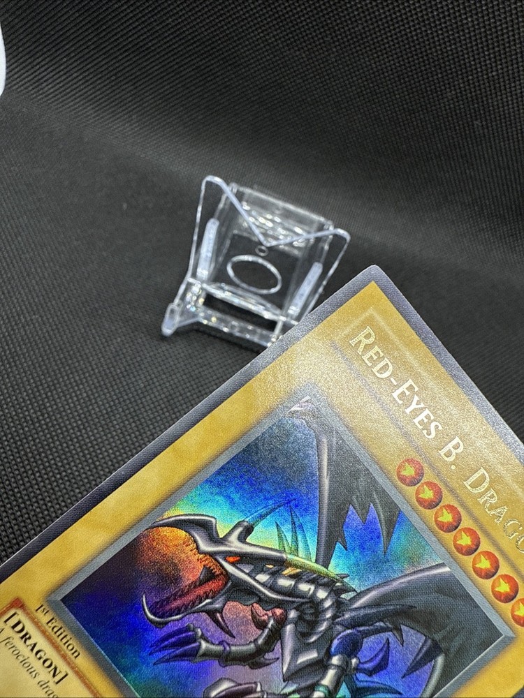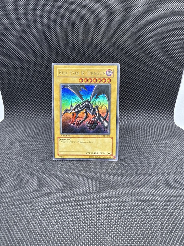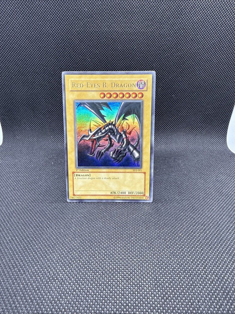 Experience the thrill of the iconic Yugioh Red-Eyes Black Dragon SDJ-001 1st Edition Holo Rare Yu-Gi-Oh! card. A staple for collectors and players alike, this Ultra Rare dragon from the Starter Deck Joey set is a must-have for its strategic prowess and aesthetic appeal. With its striking red holographic finish, this card stands out in any collection, celebrating its vintage status and the legacy of the Yu-Gi-Oh! TCG. Crafted by Konami, the Red Eyes Black Dragon card is a creature of lore, capable of tipping the scales in battle with its unique abilities. This English language card, suitable for ages 4 and up, adheres to the standard card size, ensuring compatibility with most protective sleeves and binders. Embrace the power of this legendary beast and make your next game a fiery success.