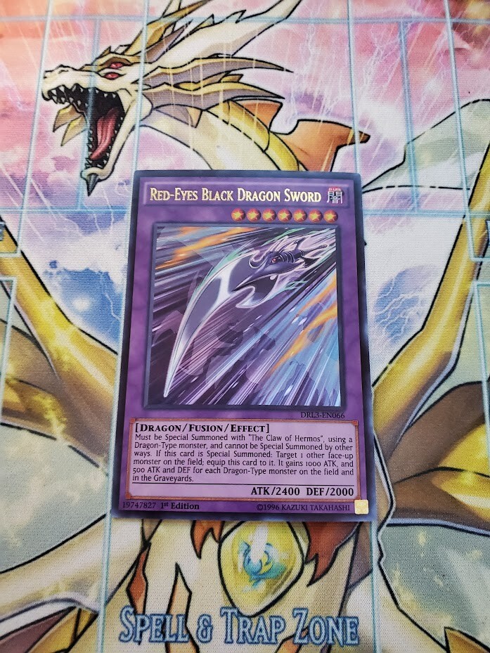 Free eBay listing template designed by dewiso.com Yugioh - Red-Eyes Black Dragon Sword DRL3-EN066 NM 1st ed Ultra Rare Product This a Yugioh Product that is being sold! Condition is exactly as pointed out in title. For you're reference: NM: Near Mint VLP: Very Lightly Played LP: Lightly Played MP: Moderately Played HP: Heavily Played Shipping This listing will be shipped via card sleeve/penny sleeve and a top loader via letter mail. If you are purchasing an order of over $150 I will provide shipping with tracking free! Contact If you have any questions whether it be more pictures of the back or clarification on an order please contact me! We will do everything to Help! Also if you have multiple items or even have specific things you are looking for, reach out and we might just have it! There are no refunds, items are final sale! If the item has been incorrectly described or wrongly sent, please send images and we will sort it out right away! If the product has X2 or X3, it means it will either come with 2 of the same card or 3 of the same card. Be sure to always check the title of the listing! Great quality products that we ship across North America! Be sure to leave a review when you receive the item! Collection and Bulk Pokemon/Yugioh Purchases If you have any collections or bulk cards that you wish to sell please contact me and send pictures of what you're looking to sell! Rates: Contact me for rates! Reminder: I am looking to make profit when buying and selling, so please when reaching out realize that we both have to profit off the transaction!