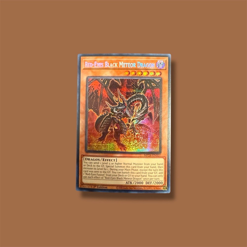 Elevate your Yu-Gi-Oh! TCG collection with the Red-Eyes Black Meteor Dragon, card number MP24-EN107. This Secret Rare gem features a striking foil finish that's sure to catch the eye of both players and collectors alike. It's a 1st Edition Effect-type card that boasts the power of a Dark attribute Dragon, a must-have for any strategic deck. Dm me for any questions :)