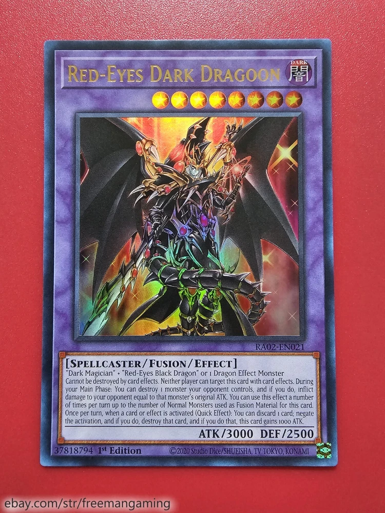 Item Description All cards are in NM Near Mint condition! 1x Red-Eyes Dark Dragoon (ultra rare) 1x Polymerization (ultra rare) 1x Dark Magician (ultra rare) 1x Red-Eyes Black Dragon (ultra rare) All items are in mint/near mint condition unless otherwise specified in the title or description. This listing is for the items named in the title and pictured here. What you see in the picture is what you will receive.
