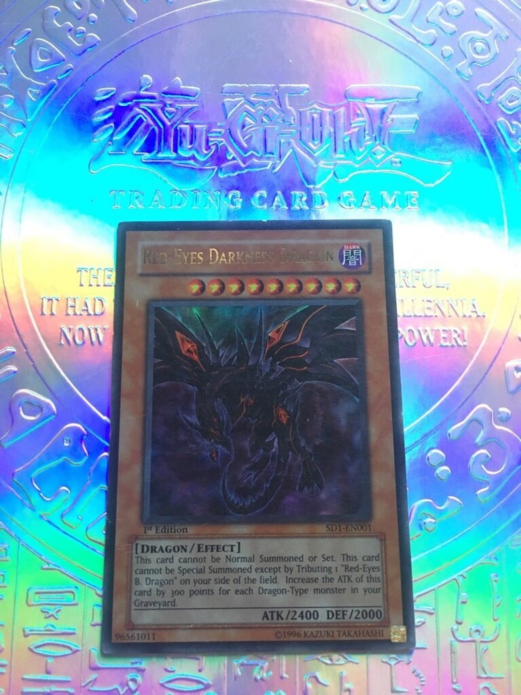 Card – Red-Eyes Darkness Dragon Print Tag – SD1-EN001 Set – Structure Deck: Dragon’s Roar Rarity – Ultra Rare Edition – First Condition – Lightly Played Quantity – 1 The main issue with this card is that it has some light surface scratches on the front and a little more severe scratch on the bottom of the back. No bends on the card, all 4 corners are in good condition. Listing generated using the YugiohPrices.com card lister.