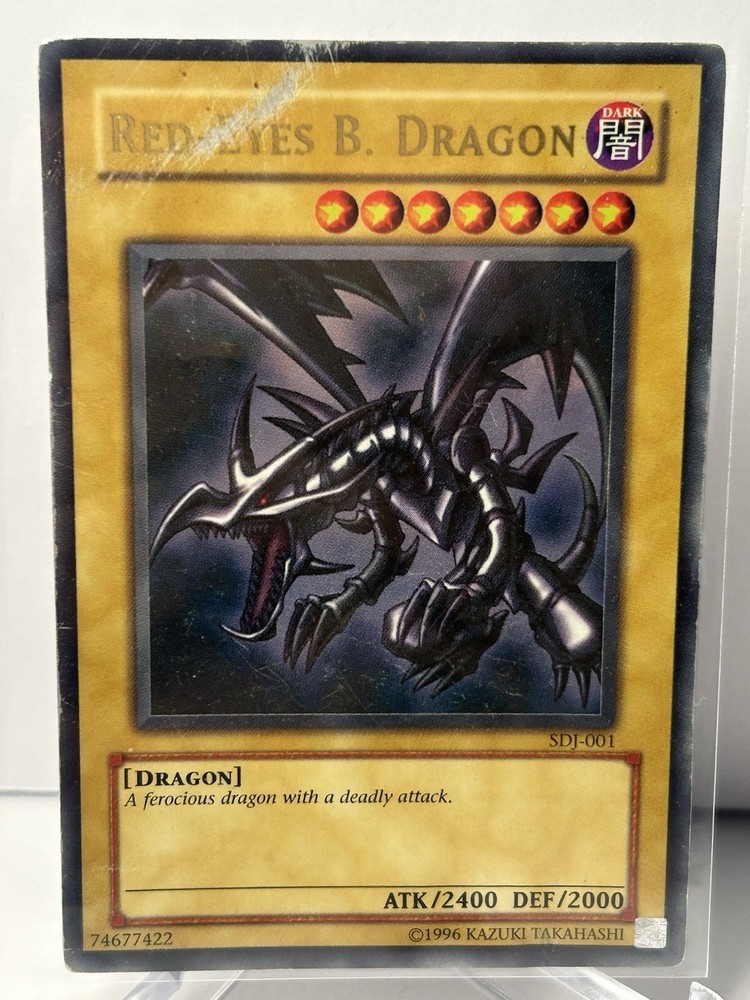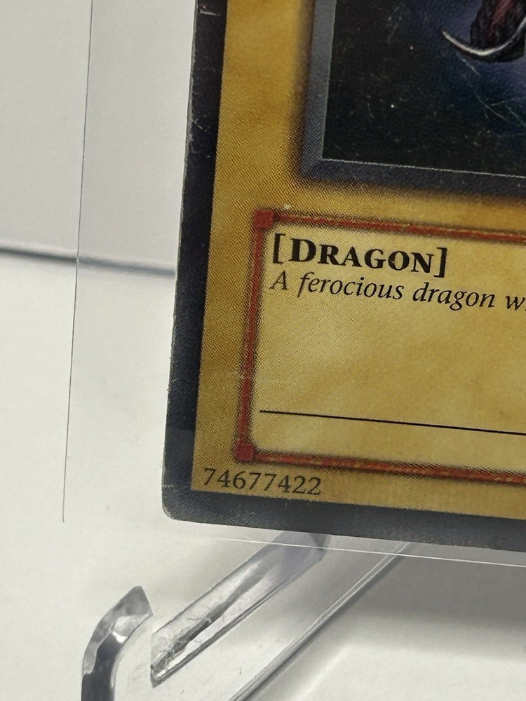 For all the Yu-Gi-Oh! enthusiasts out there, here's your chance to own the legendary Red-Eyes Black Dragon card, a must-have for any serious collector or player. This Ultra Rare 1st Edition card is a classic addition to your collection, featuring the iconic foil finish that makes it stand out from the rest. This card is in English and produced by Konami, a trusted name in the Yu-Gi-Oh! TCG industry. The card size is standard, and it's suitable for anyone aged 6 and up. Don't miss your chance to own this powerful and rare card, perfect for both gameplay and display. Damage all over with surface, edge and corner issues See pics YG 151