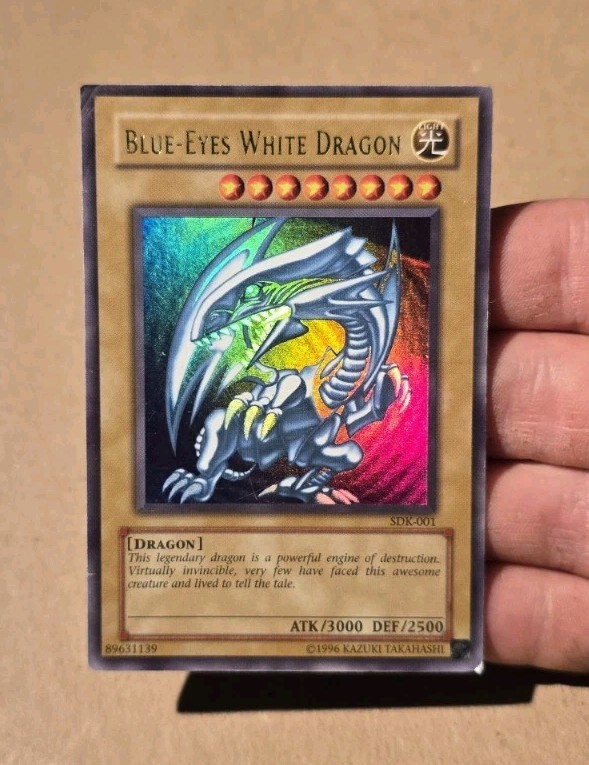 Condition is Damaged. Shipped with a sleeve and toploader. Elevate your Yu-Gi-Oh! TCG collection with the iconic Blue-Eyes White Dragon card, a must-have for duelists and collectors alike. Featuring the legendary creature in stunning holographic detail, this Ultra Rare card is a standout addition, reflecting a rich heritage with its vintage status. The Blue-Eyes White Dragon card comes in English and boasts an unlimited feature, ensuring it's ready for both competitive play and display. With its classic white attribute, this card is a timeless piece that encapsulates the essence of the beloved Yu-Gi-Oh! universe.