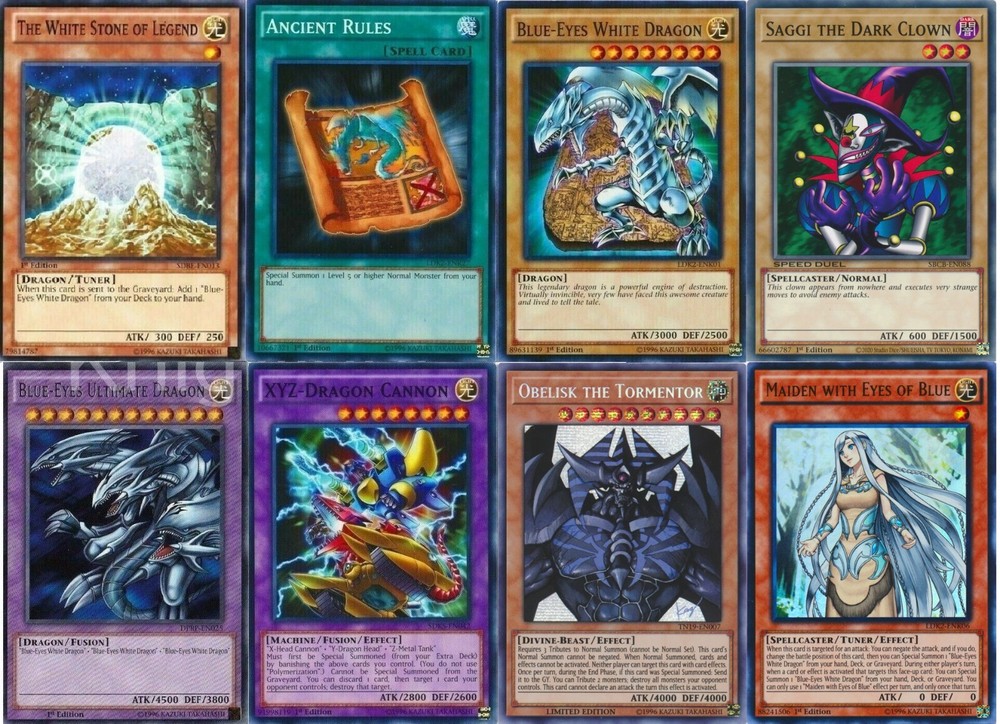* All of the cards listed are NM condition, unless stated otherwise 23x Monsters: 3x Blue-Eyes White Dragon (1 is ultra rare) 1x Obelisk the Tormentor (secret rare or ultra rare anime art) 2x Maiden with Eyes of Blue 1x The White Stone of Legend 1x Battle Ox 2x Ancient Lamp 2x La Jinn 1x Lord of D. 1x Ryu-Kishin Powered 1x Vorse Raider 3x Card Trooper 1x Saggi the Clown 1x Kaiser Sea Horse 1x Master with Eyes of Blue 1x Protector with Eyes of Blue 1x X-Head Cannon 1x Y-Dragon Head 1x Z-Metal Tank 8x Spells: 1x Monster Reborn 1x The Flute of Summoning Dragon 3x Burst Stream of Destruction 1x Enemy Controller 1x Polymerization 1x Dragon's Fighting Spirit (ultra rare) 8x Traps: 1x Crush Card Virus 1x Burst Breath 1x Cloning 1x Tyrant Wing (super rare) 1x Shadow Spell 1x Final Attack Orders 2x Call of the Haunted 2x Extra Deck: 1x Blue-Eyes Ultimate Dragon (ultra rare 1x XYZ-Dragon Cannon (rare) Total X 42 Shipping * Seto Kaiba Complete Deck will be packaged in a secure bubble-wrap envelope. International buyers Import duties, taxes, and charges aren't included in the item price or postage cost. These charges are the buyer's responsibility. Please check with your country's customs office to determine what these additional costs will be prior to bidding or buying.