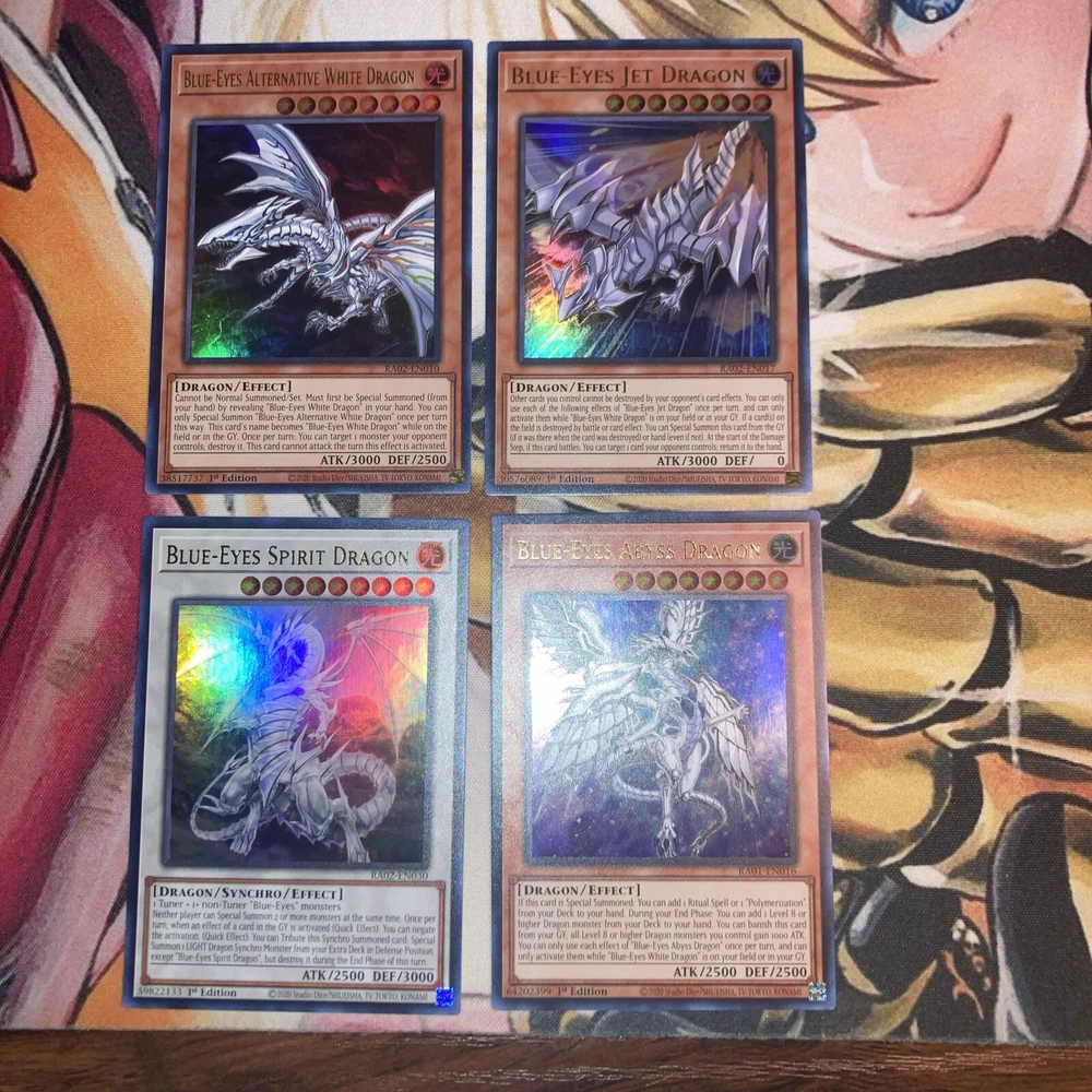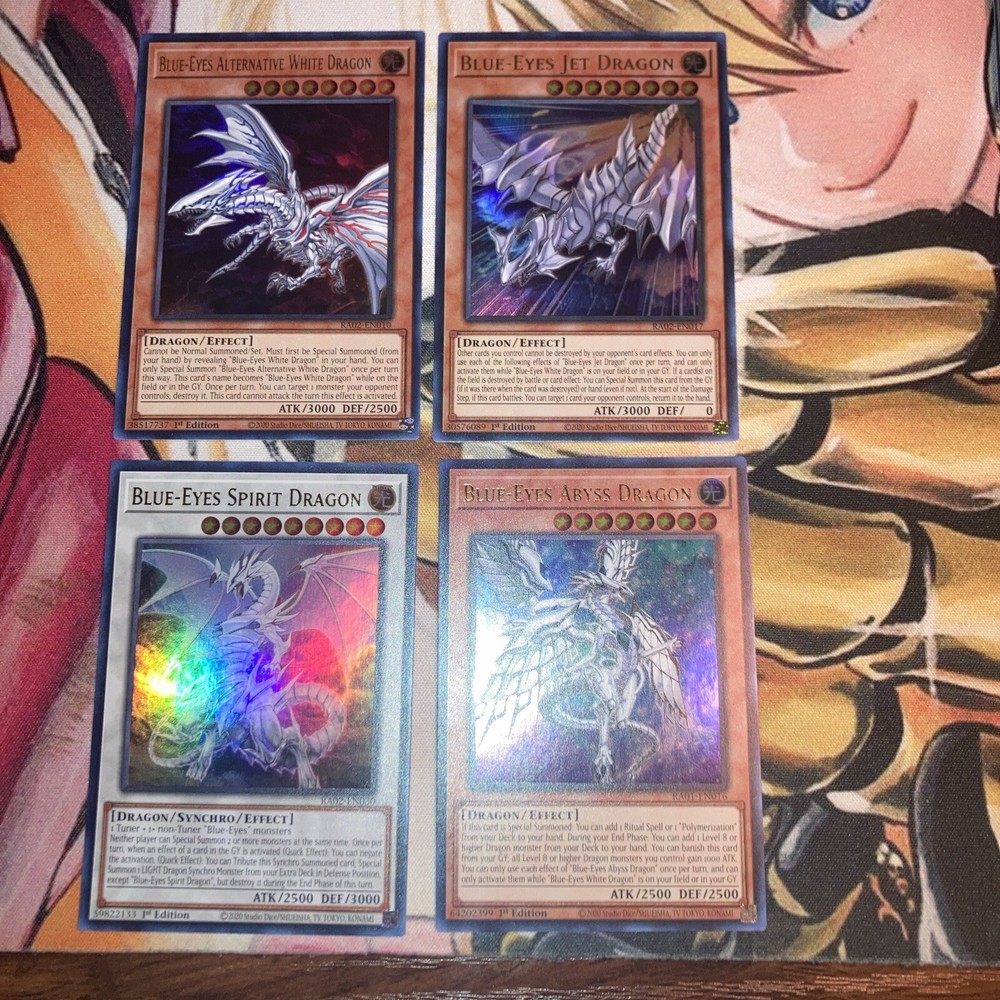 1x Blue-Eyes Spirit Dragon Ultra Rare NM 1x Blue-Eyes Abyss Dragon Ultra Rare NM 1x Blue-Eyes Jet Dragon Ultra Rare NM 1x Blue-Eyes Alternative White Dragon Ultra Rare NM