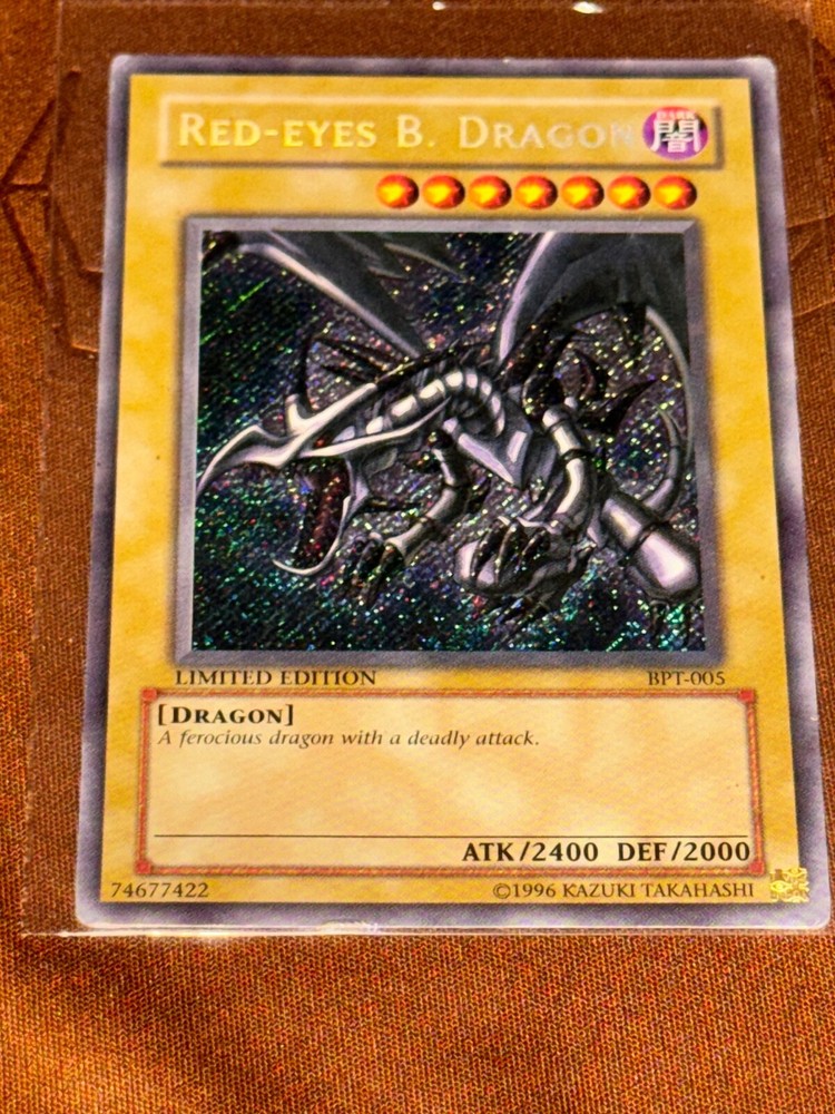 The Yugioh TCG Red-Eyes Black Dragon Limited Edition BPT-005 Collector's Tin 2002 is a sought-after collectible for fans of the Yu-Gi-Oh! trading card game. This special tin set features a Dark attribute Monster card named Red Eyes Black Dragon, with impressive attack and defense stats of 2400 and 2000 respectively. Manufactured by Konami in 2002, this English language card is a Secret Rare rarity with a holo finish, making it a valuable addition to any collector's deck. The tin also includes other cards from the Collector's Tin 2002 set, such as Joey Wheeler and Yugi Muto's cards.
