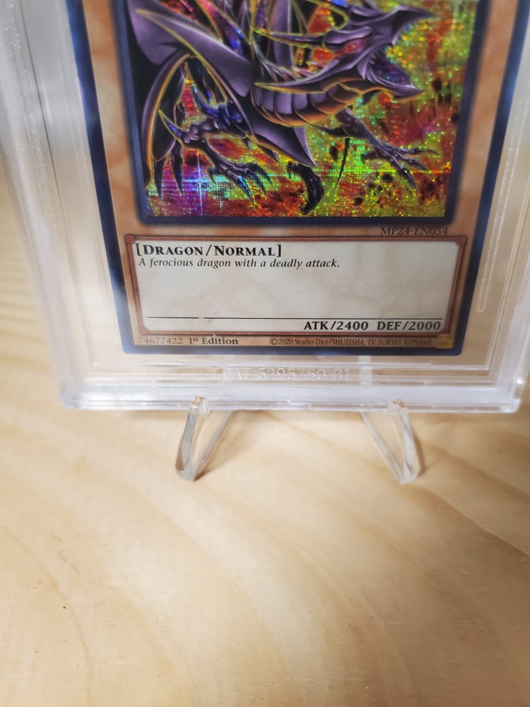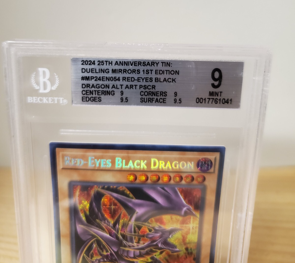 Red-Eyes Black Dragon MP24-EN054 (1st Edition) *BGS 9* Cert. #0017761041 The slab has chips in it, at the top and bottom on the front and some minor chips on the back, as well as some scuffs on the front and back as well, if you are particular about slab condition you can submit it back to BGS for a reslab, the card is undamaged and has not been affected by the wear on the slab. Card will be packaged carefully so it doesn't incur damage during transit. I ship quickly and generally get everything out same day or the next business day! Thanks for reading!