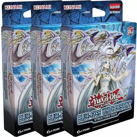 This Yugioh Blue-Eyes White Destiny Structure Deck lot is a must-have for collectors and duelists! The sealed English decks are in perfect condition, and getting three ensures plenty of powerful cards for dueling or trading. Free shipping is a nice bonus—great value for fans of the iconic Blue-Eyes archetype!