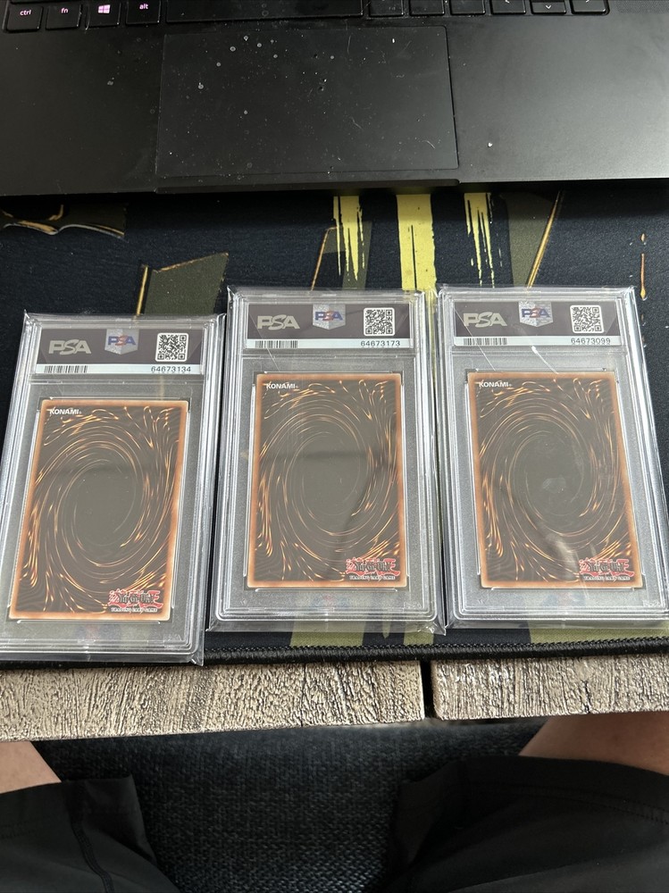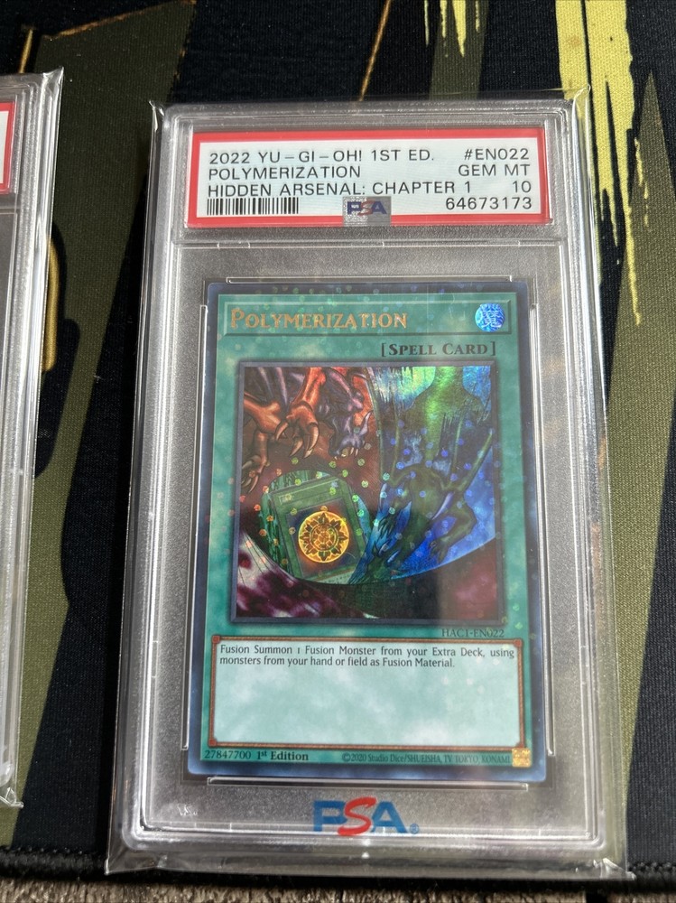 This Yugioh lot includes three PSA 10 graded cards: Dark Magician, Red Eyes B. Dragon, and Polymerization from the Hidden Arsenal Special Edition Set. These Duel Terminal Ultra Rare cards are perfect for collectors and players alike. The Dark Magician, a legendary monster card, is joined by the fierce Red Eyes B. Dragon and the versatile Polymerization spell card. All cards are 1st Edition and in English. The lot is suitable for ages 10 and up and is sure to enhance any Yu-Gi-Oh! TCG collection.