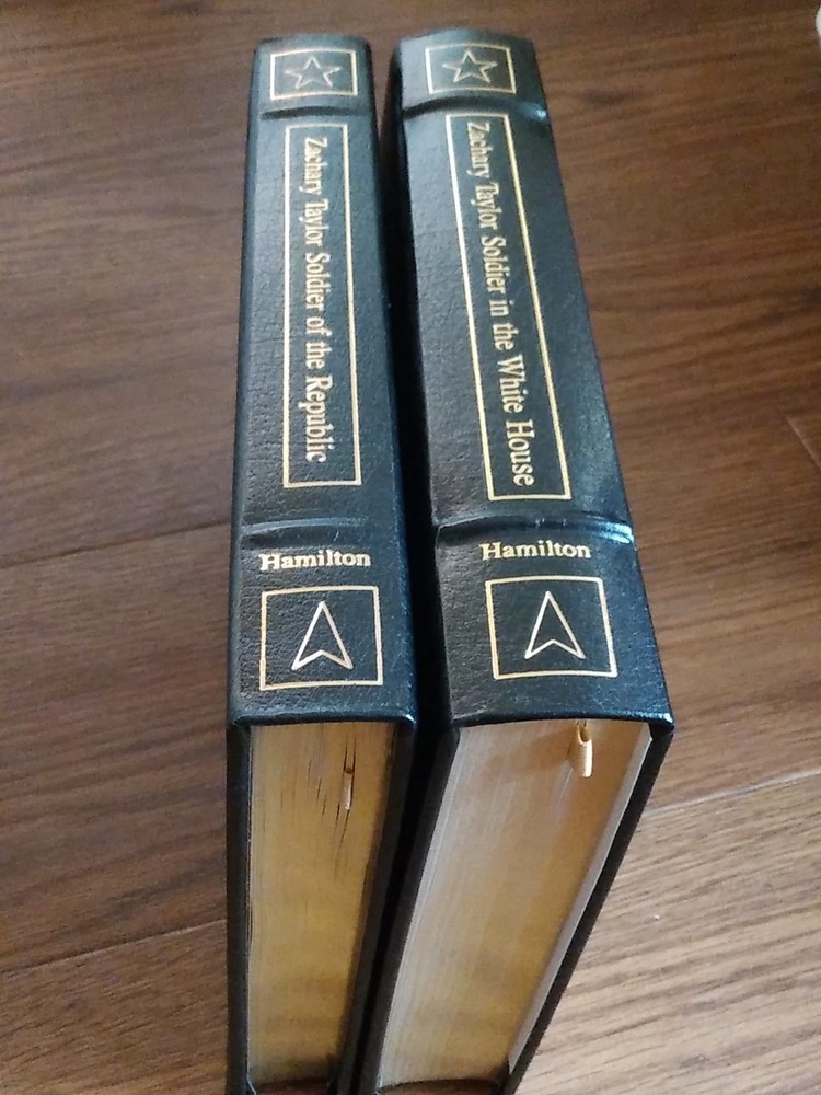 This 2 volume set by author Holman Hamilton titled "Zachary Taylor: Soldier of the Republic and White House" is a luxurious and collectible edition published by Easton Press in 1989. The leather-bound books are illustrated and considered a limited edition, making them a valuable addition to any collection of presidential biographies. Written in English and printed in the United States, this set offers a unique insight into the life of Zachary Taylor, a significant figure in North American history. Beautiful set in mint condition.