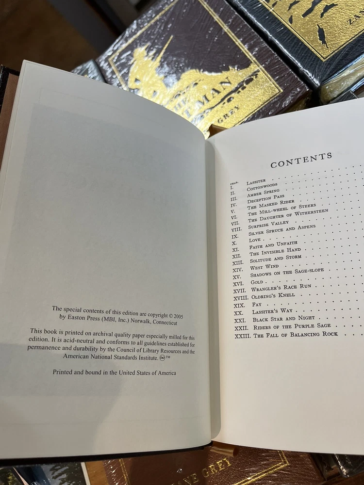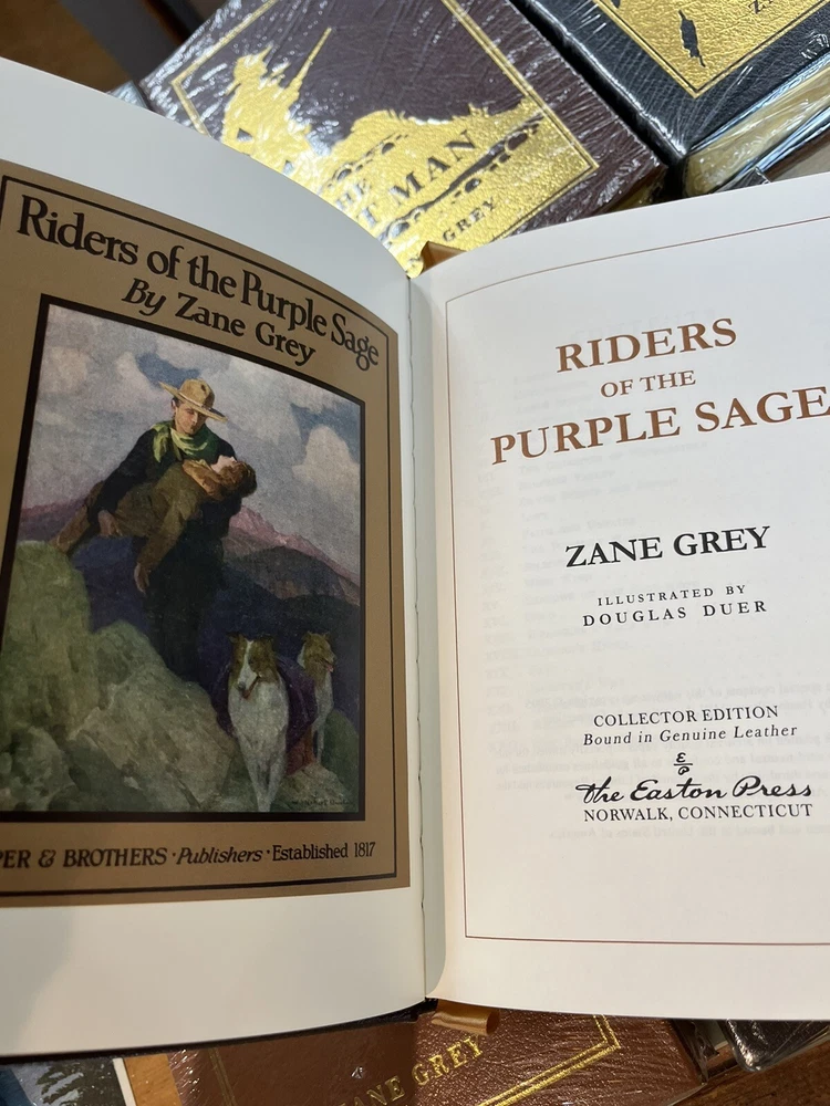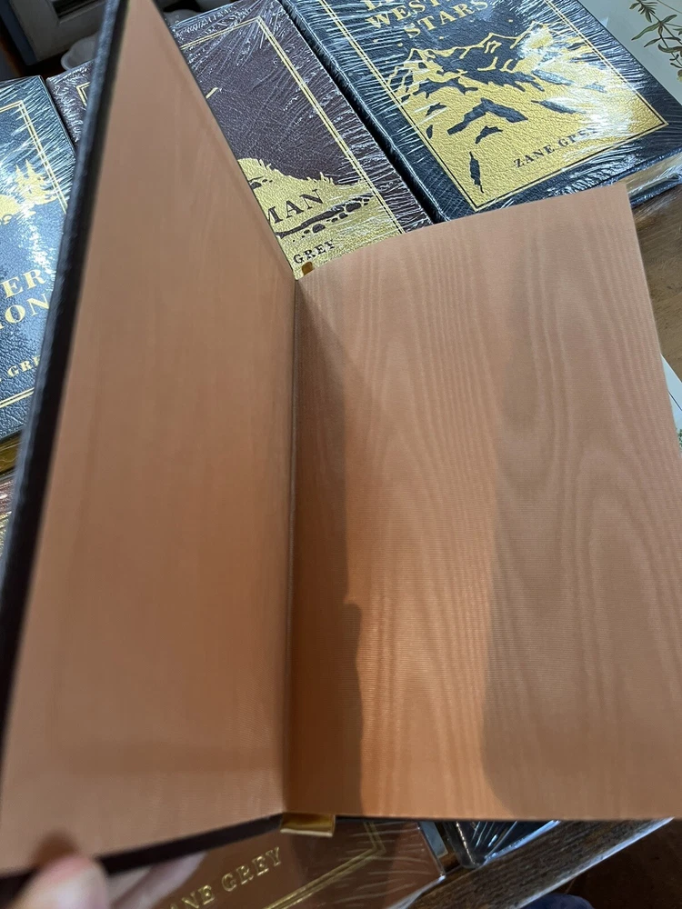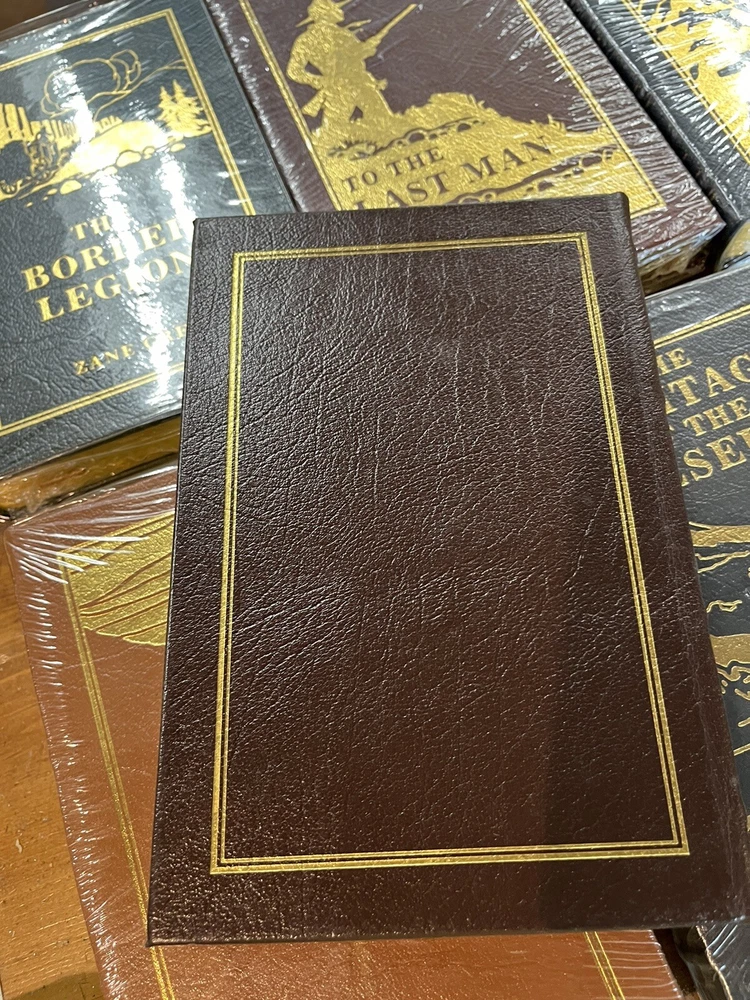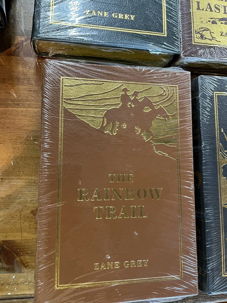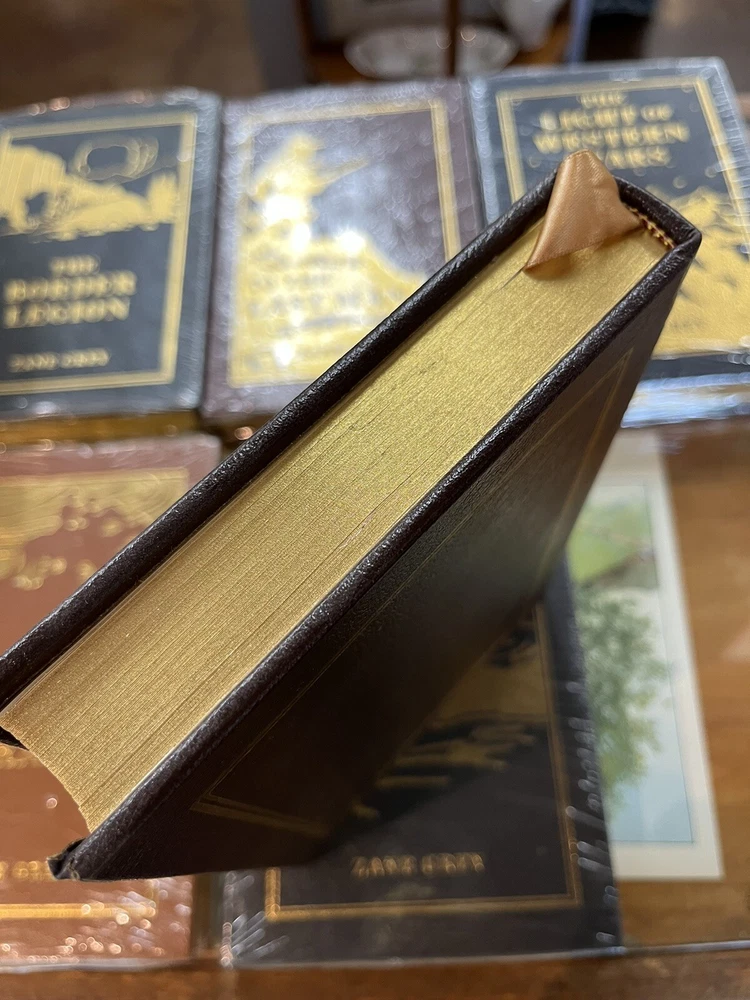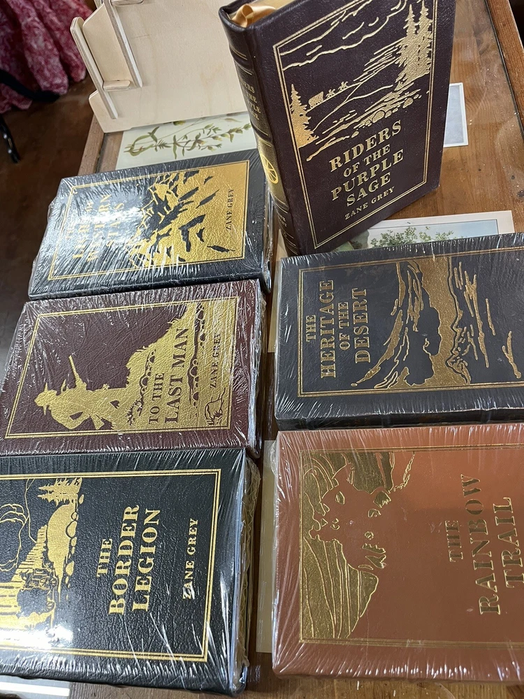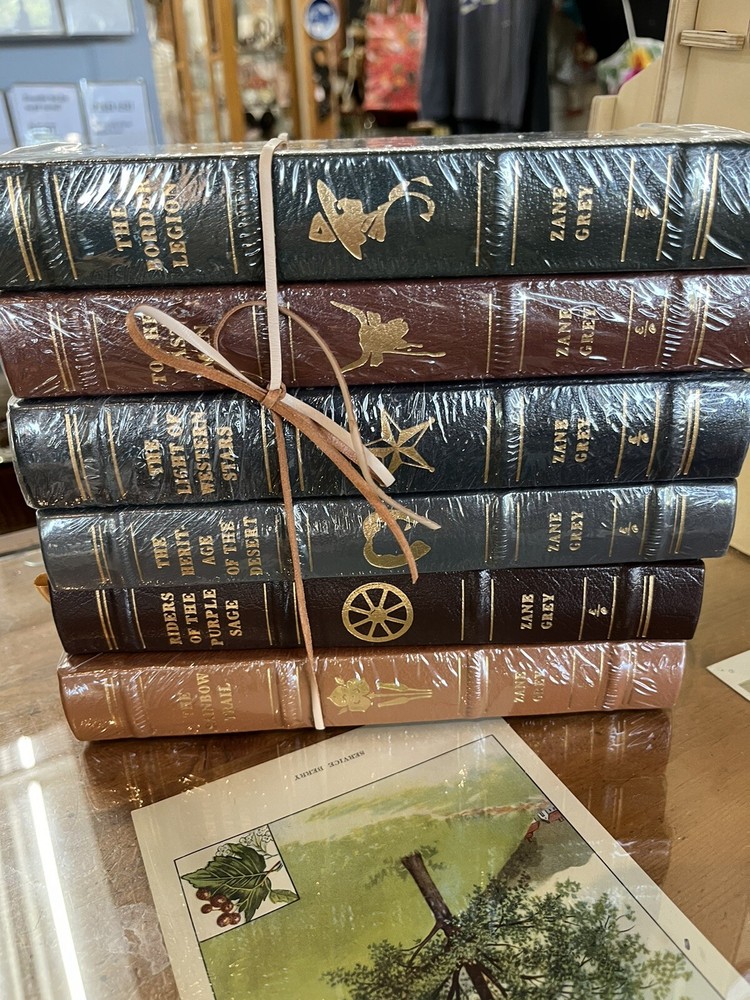 Beautiful (out of print) Easton Press Set of Six Leather bound books. Excellent condition. Five of the six are still sealed (please see photos). A handsome addition to any Zane Gray enthusiast’s library. No issues noted with this set. Just lovely. Sold as a set only.