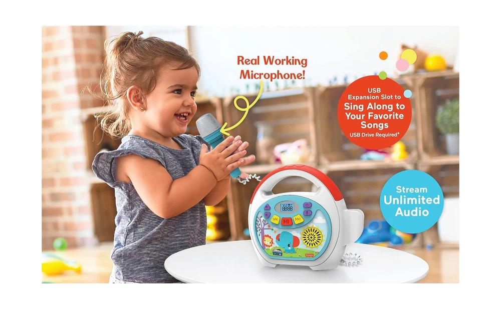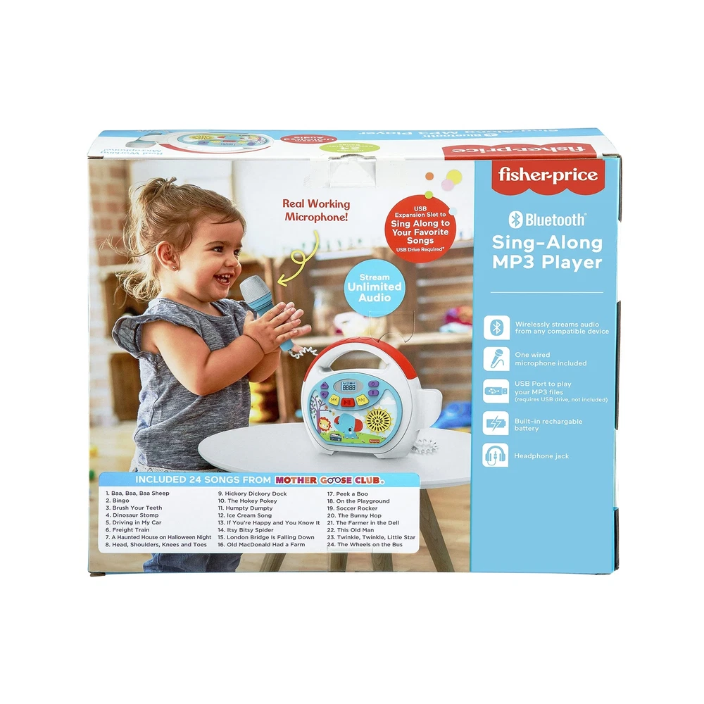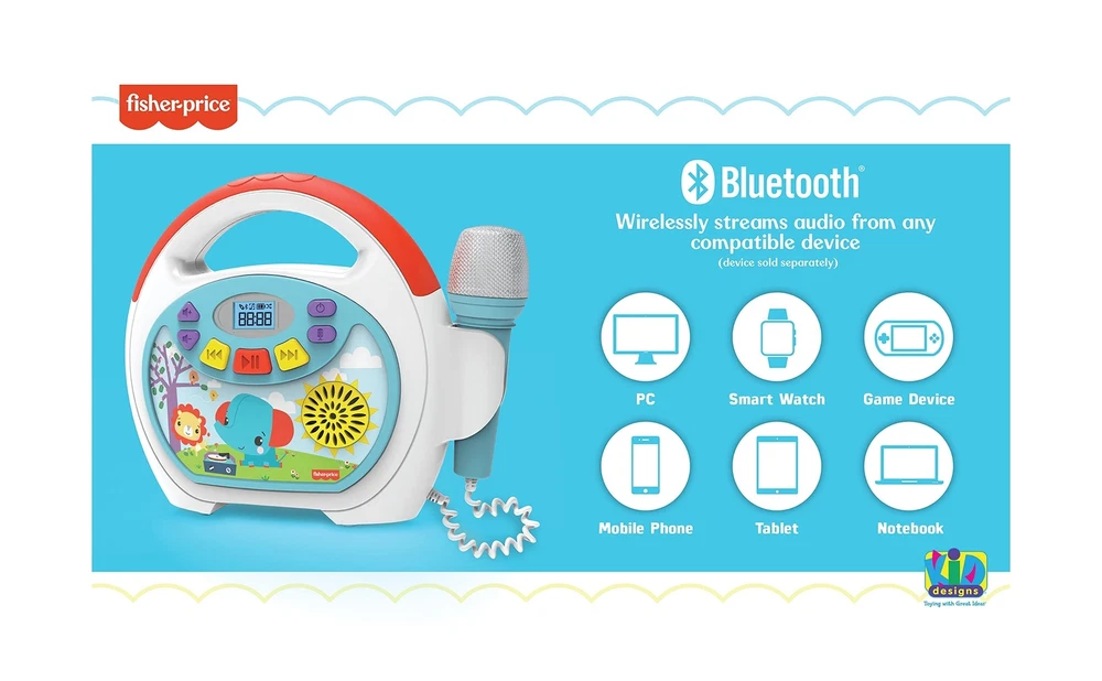 Brand New eKids Fisher Price Karaoke Machine, Portable Bluetooth Party Speaker with Microphone for Kids, Built-in Mother Goose Club Songs and Speaker with USB Port to Play Music Manufacturer model: FP-550 Bluetooth Boombox: Connect this party speaker to any compatible Bluetooth device and stream all your content wirelessly. Sing like a star to your favorite songs using the real working wired microphone. Built-in Music: Karaoke machine features 24 built in songs from Mother Goose Club, including 'Bingo', 'The Hokey Pokey', 'Itsy Bitsy Spider', 'The Bunny Hop, and more USB Audio Player: This music player for kids makes it easy to expand your content. Connect a USB drive and play your favorite songs from your music collection Kid-Friendly Design: Lightweight portable speaker with microphone includes a headphone jack, so you can listen to your content without disturbing others. Visit the ekids brand store to explore our headphone selection. The built in rechargeable battery means you can take this karaoke machine for kids anywhere (charging cable included) Perfect Gift: this kids karaoke machine will make the perfect gift or birthday present for children aged 3 and up. Visit the ekids brand store for even more cool products for kids! Description Shipping and Handling Please allow 5-7 business days for the package to arrive, regardless of buyer location within the US. We will provide an online tracking number to you once the item has been shipped. It may take a few business days for our automated system to process the tracking number onto eBay. However, this will not affect the shipping times. Return Policy All our products are brand new and sealed. All items qualify for returns within 30 days of receipt. Feedback We take our reputation seriously. If you have any questions or concerns, please contact us and we will respond back to your message within 24 hours.