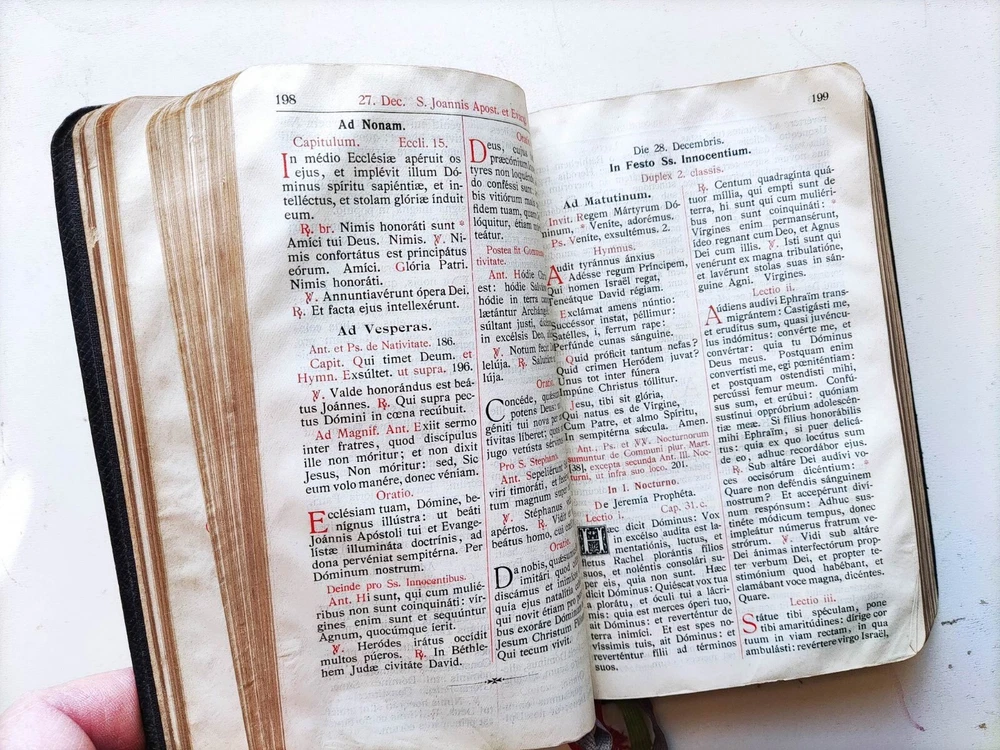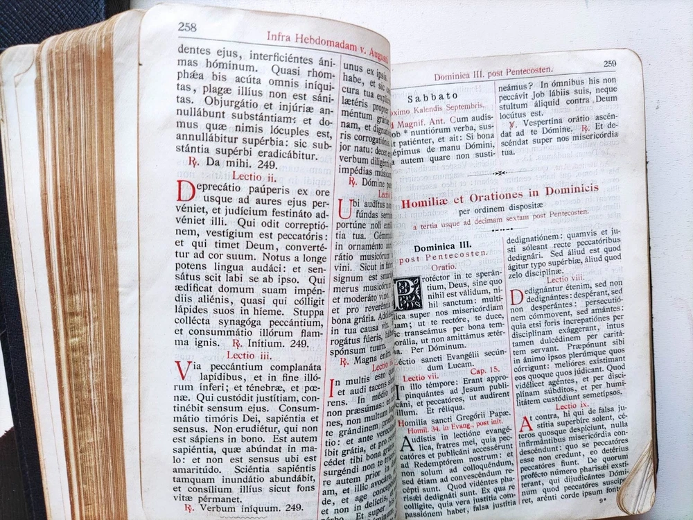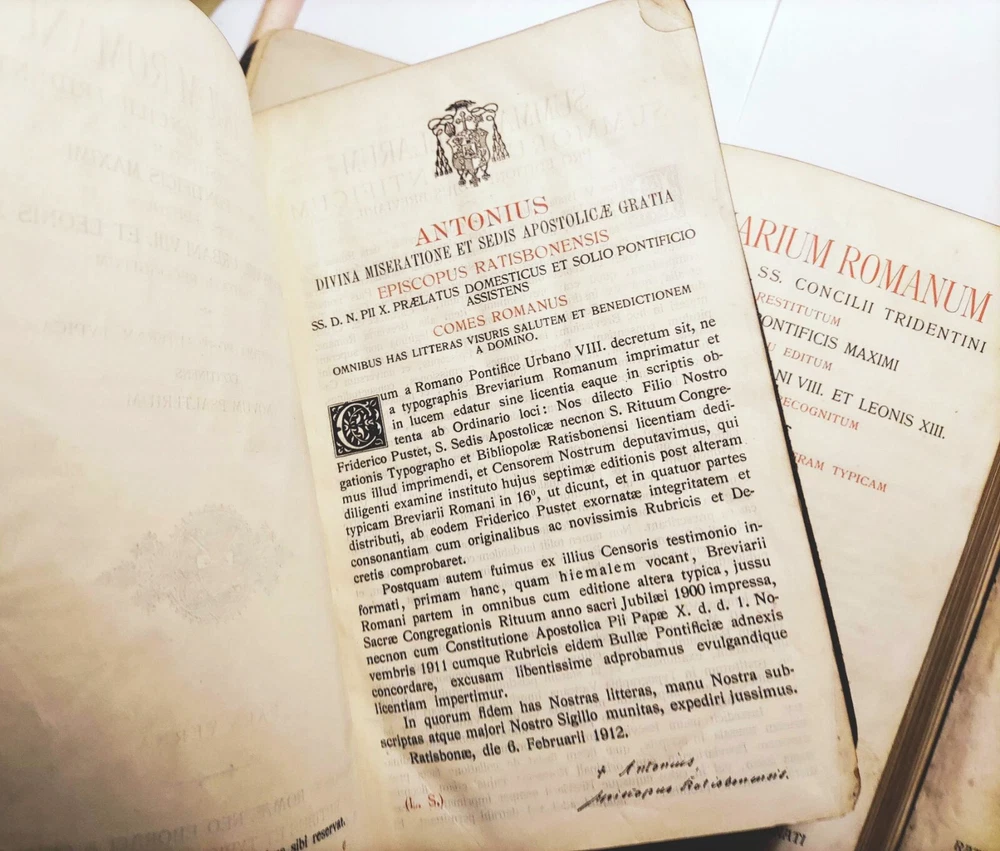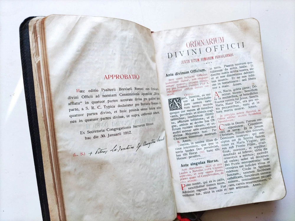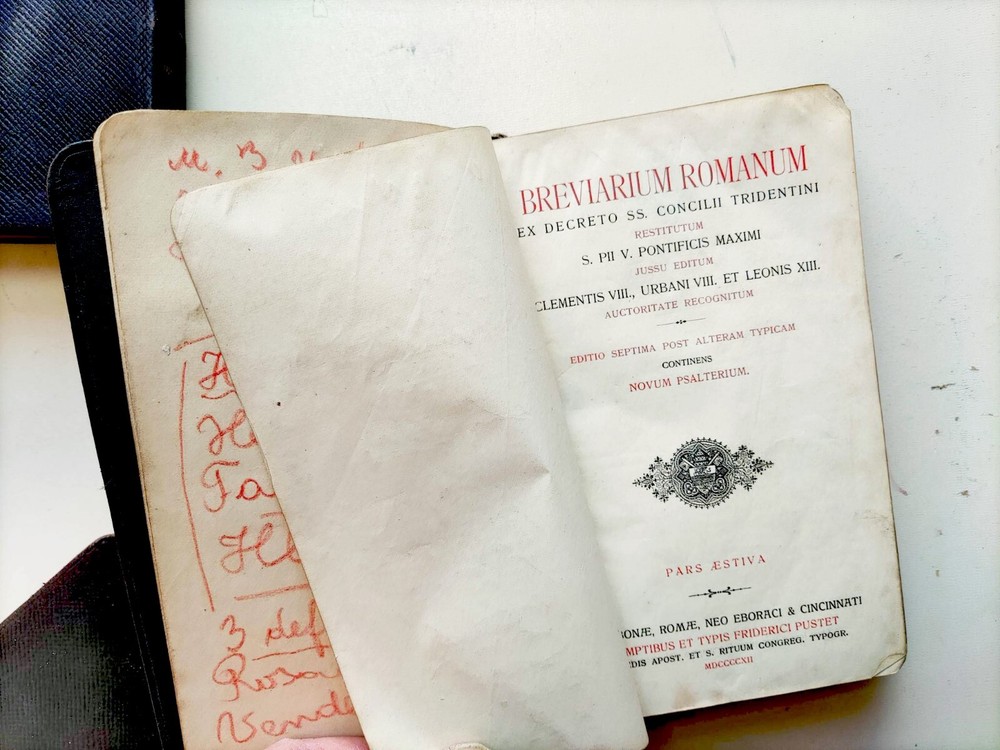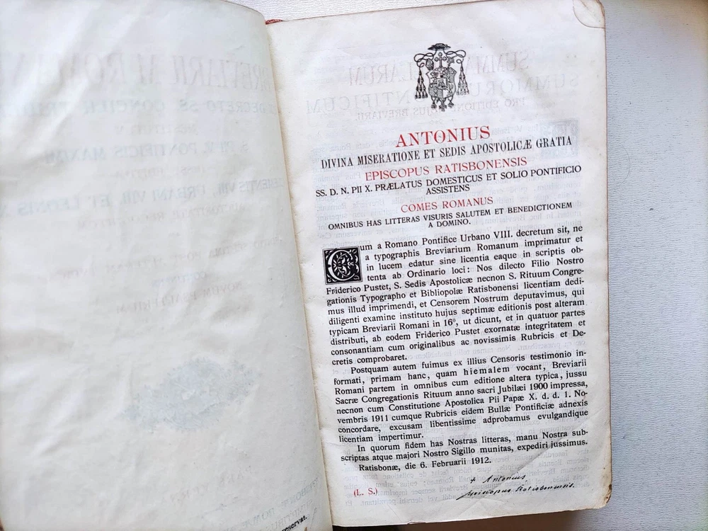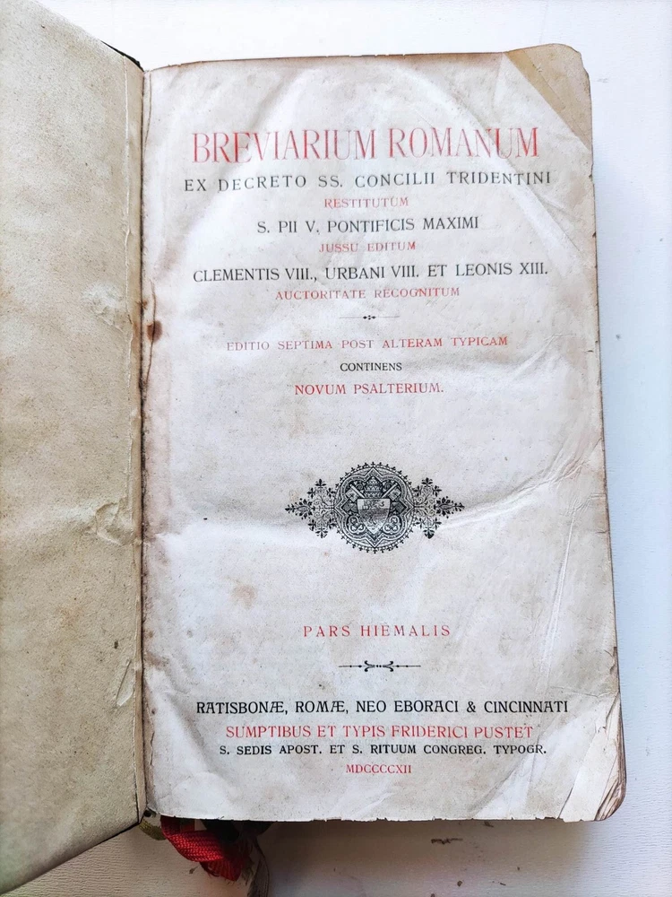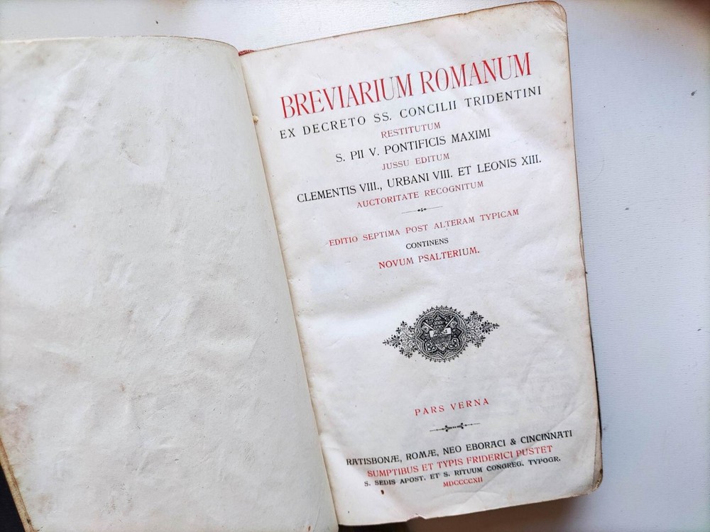 --------------------------------------------------------- *Die Lieferung Kosten sind im Preis nach Deutschland und Österreich inbegriffen (Ausnahme sind deutsche Inseln, denn dort plus 7,50 EUR) *The delivery costs are included in the price to Germany and Austria. if you are visiting from another country please inquire about shipping cost. --------------------------------------------------------- Breviarium Romanum 3 VOL SET Pars Verna, Aestiva, Hiemalis /Leather Bound/ (1912, Ratisbonae) BREVIARIUM - ROMANUM EX DECRETO SS. CONCILII TRIDENTINI RESTITUTUM S.PII V PONTIFICIS MAXIMI JUSSU EDITUM CLEMEMTIS VIII. URBANI VII. et LEONIS XIII. AUCTORITATE RECOGNITUM Editio Septima Post Typicam contienes NOVUM PSALTERIUM PARS VERNA/ PARS AESTIVA/ PARS HIEMALIS Publisher: Ratisbonae, 1912 10,5 x 17 x 7 cm (3 vol.set) Pars Verna 56 + 580 + 414 + Index Pars Aestiva 59 + 560 + 372 + Index Pars Hiemalis 92 + 512 + 360 + Index Condition: good, no missing pages