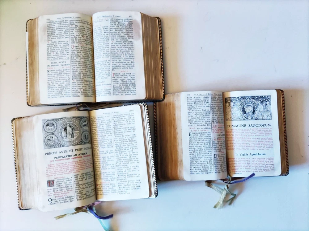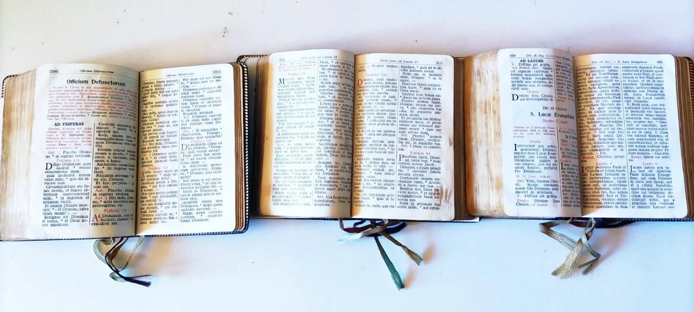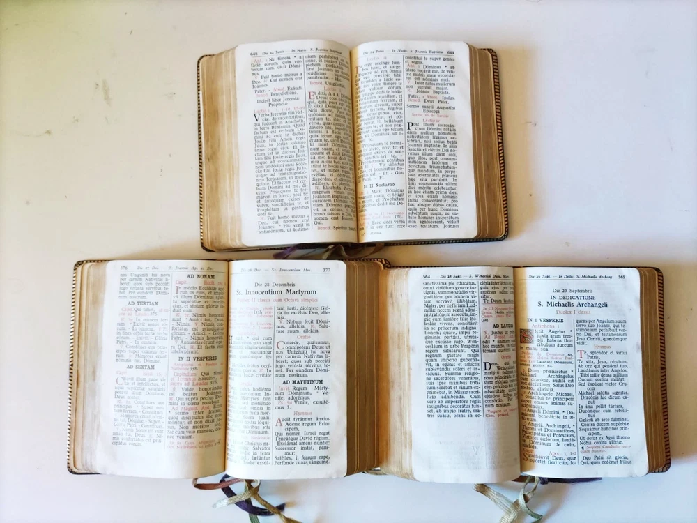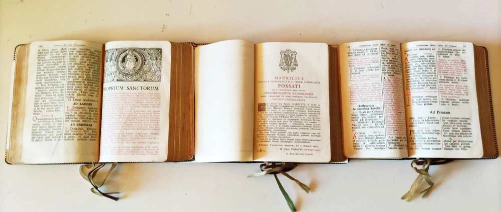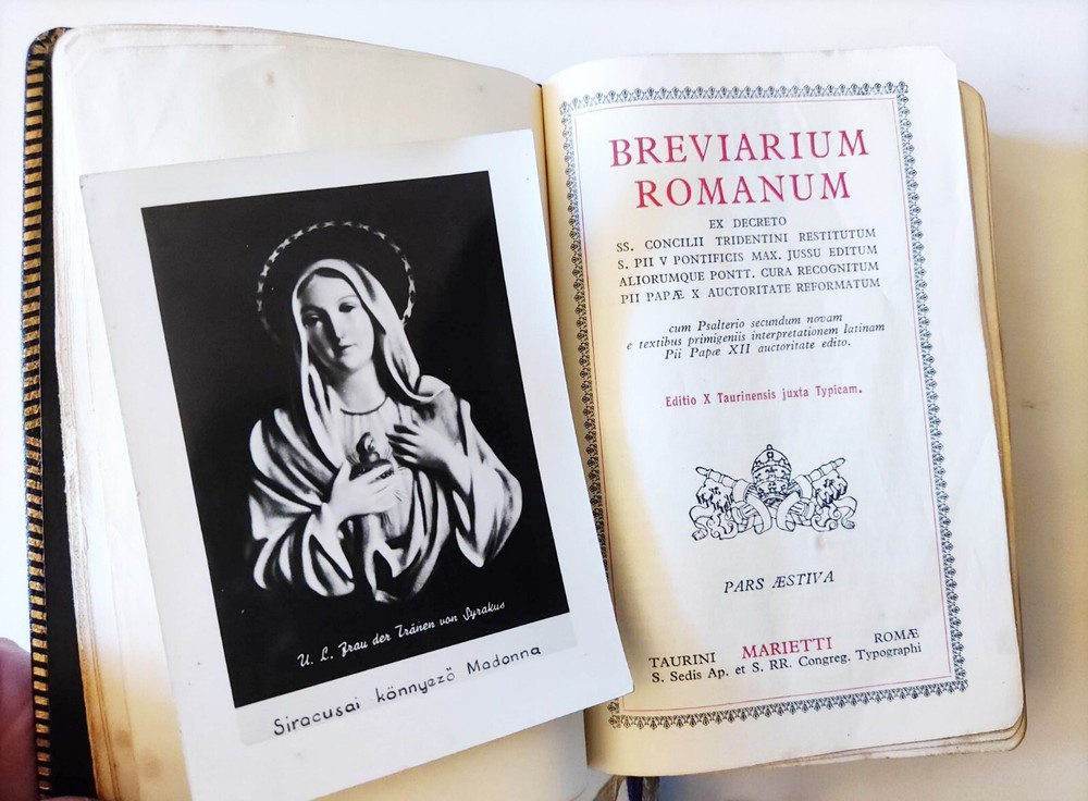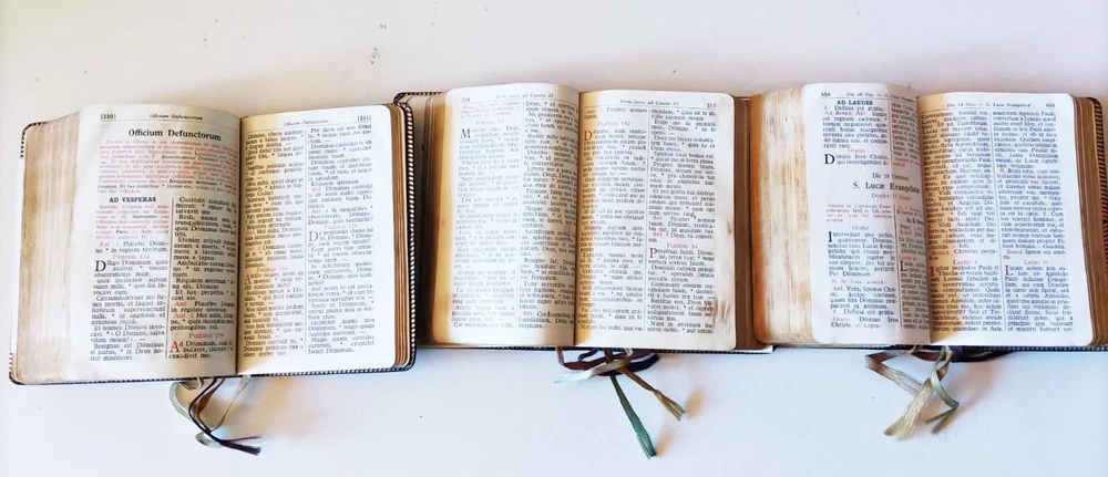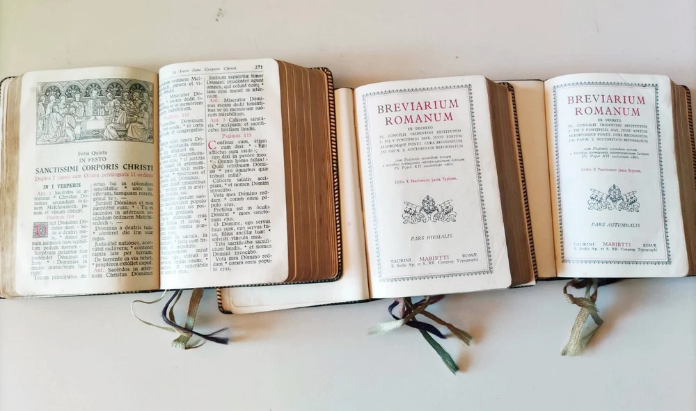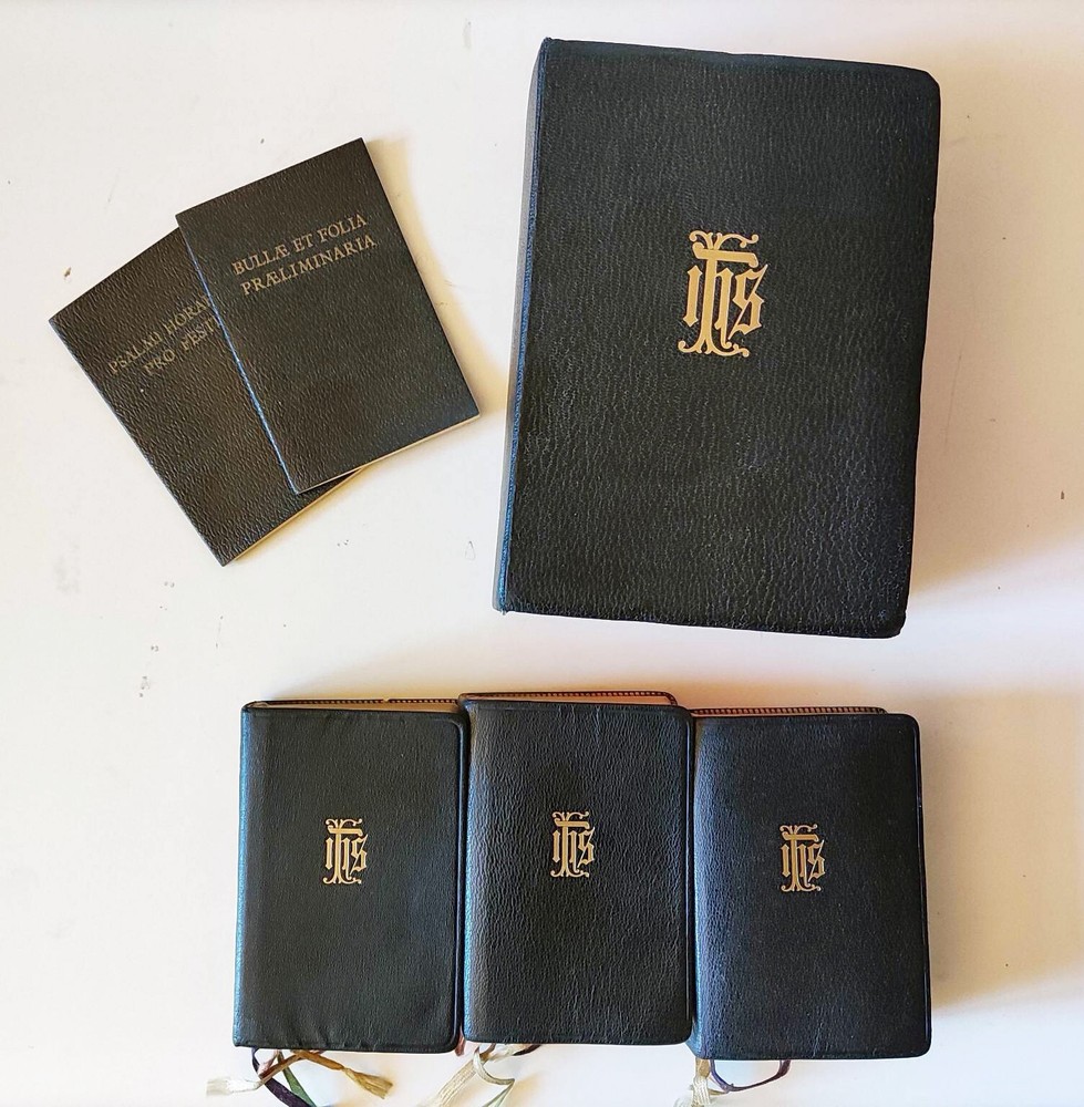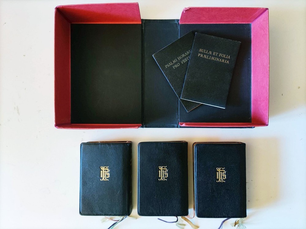 *Die Lieferung Kosten sind im Preis nach Deutschland und Österreich inbegriffen (Ausnahme sind deutsche Inseln, denn dort plus 7,50 EUR) *The delivery costs are included in the price to Germany and Austria. if you are visiting from another country please inquire about shipping cost. ----------------------------------------------------------------------------------------------------------------- Breviarium Romanum 3 VOL SET Pars Aestiva, Autumnalis, Hiemalis /Leather Bound/ (1949, Marietti) BREVIARIUM - ROMANUM EX DECRETO SS. CONCILII TRIDENTINI RESTITUTUM S.PII V PONTIFICIS MAXIMI JUSSU EDITUM ALIORUMQUE PONTT. CURA RECOGNITUM PII PAPAE X AUCTORITATE REFORMATUM cum Psalterio secundum novam e textibus primigeniis interpretationem latinam Pii Papae Xii autritate edito. EDITIO X TAURENSIS juxta Typicam PARS AESTIVA/ PARS AUTUMNALIS / PARS HIEMALIS Publisher: Marietti, 1949 13 x 9 x 8 cm (3 vol.set) BOX: 20,5 x 14 x 7 cm Pars Aestiva 5+ XXX+ 968+ 297+ Indices+ 25 Pars Autumnalis 5+ XXX+ 852+ 297+ Indices+ 5 Pars Hiemalis 5+ XXX+ 892+ 305+ Indices+ 11+ 6
