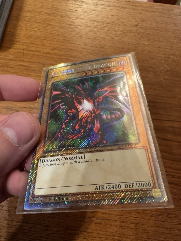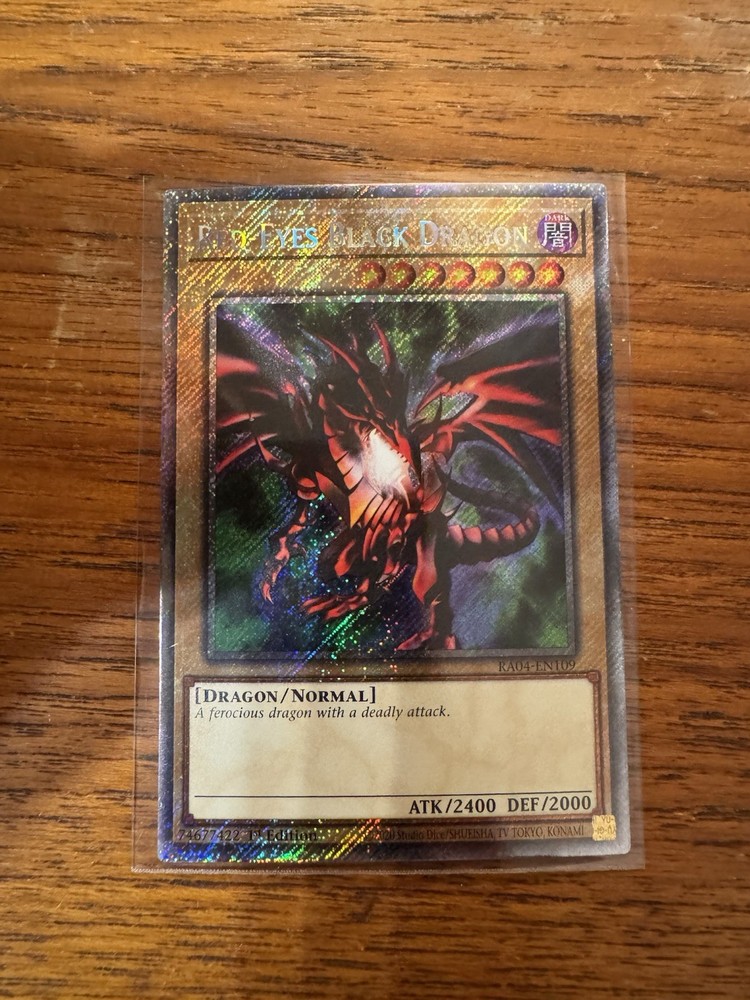 Elevate your Yu-Gi-Oh! TCG collection with the iconic Red Eyes Black Dragon, card number RA04-EN109, a Platinum Secret Rare gem that stands out for its unique artwork and powerful presence on the battlefield. Renowned for its strategic advantage in gameplay, this card is a must-have for duelists aiming to dominate their opponents. As a sought-after piece among enthusiasts, the Red Eyes Black Dragon is not just a card but a piece of Yu-Gi-Oh! history. With its rarity and significance in the game's lore, it holds a special place in the collections of fans and competitive players alike, ready to make a significant impact in your next game.