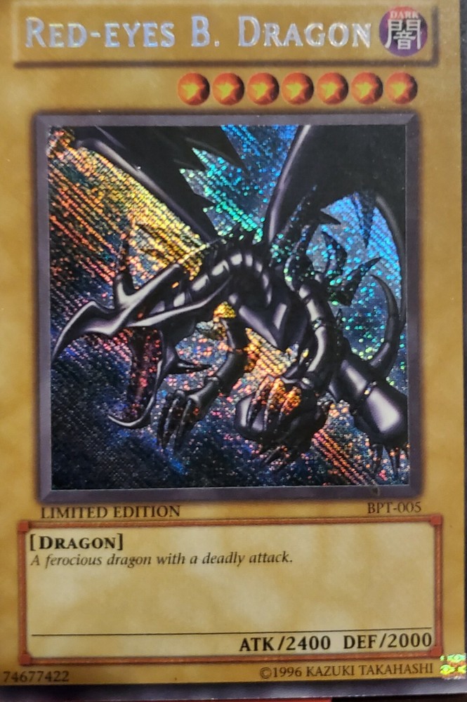 red eyes black dragon bpt-005. Near mint condition, card is sleeved and protected. Original set pulled from Joey tin collector set....