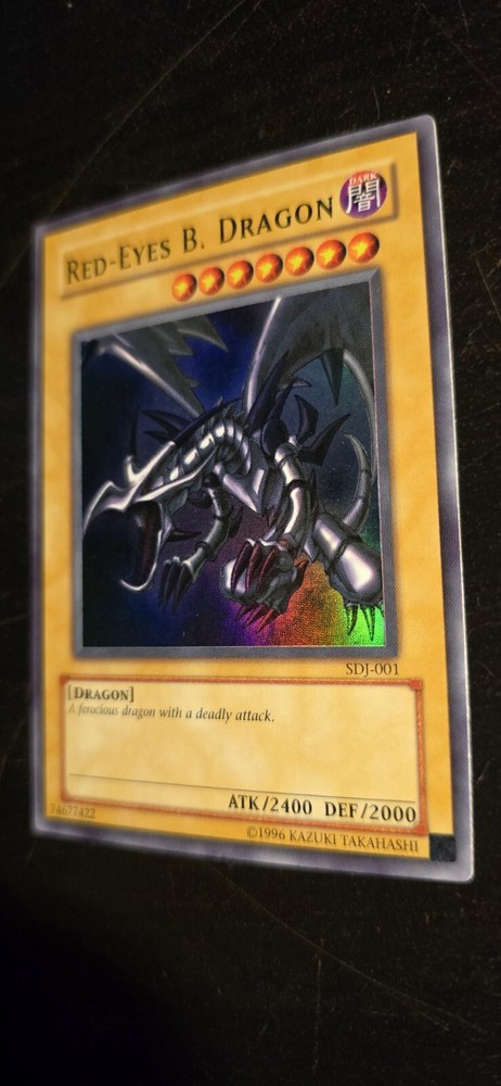 The Red Eyes Black Dragon SDJ-001 1st Edition card from the Yu-Gi-Oh! TCG is a highly sought-after collectible for any trading card game enthusiast. This iconic card features stunning artwork and is a must-have addition to any collection. Perfect for fans of the classic Yu-Gi-Oh! series, this rare 1st Edition card is sure to be a valuable and cherished piece for any card game enthusiast.