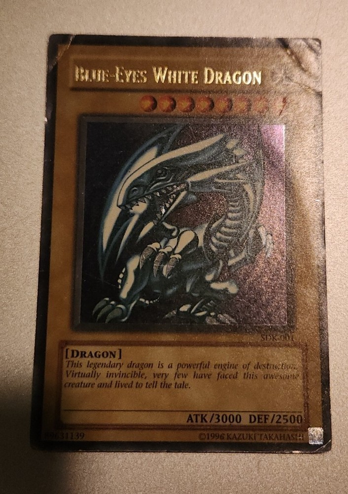 This Yu-Gi-Oh! TCG card features Seto Kaiba's iconic Blue-Eyes White Dragon in a standard size and holo finish. The card is from the Kaiba set, with an Unlimited edition and card number SDK-001. The card is made of high-quality card stock material and is in HP condition. The card is perfect for collectors and fans of the Yu-Gi-Oh! TCG. It has been manufactured by Konami and is available in English language. The card type is Monster, and it does not have any mentionable features apart from the holo finish. Don't miss this chance to add this rare card to your collection!